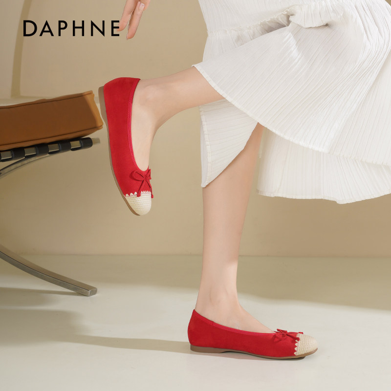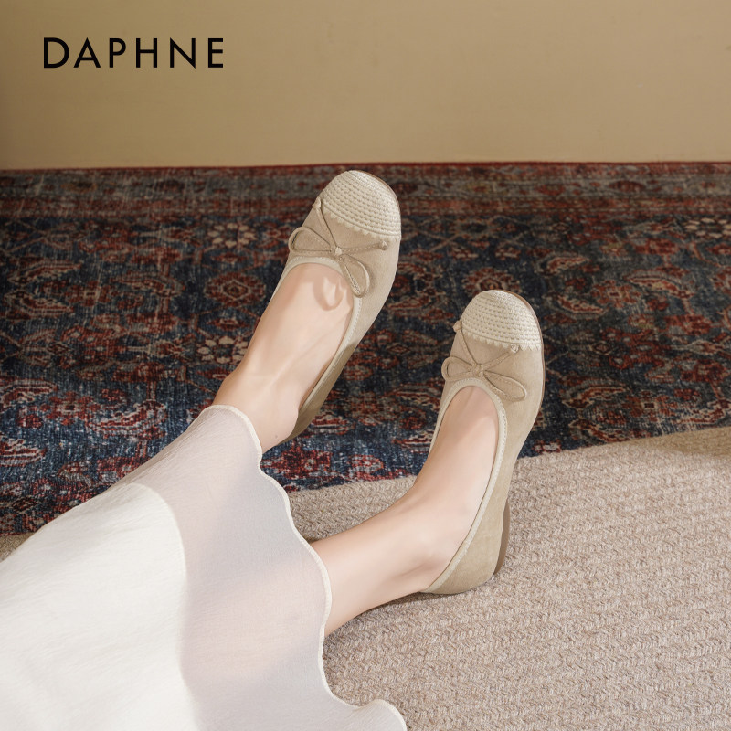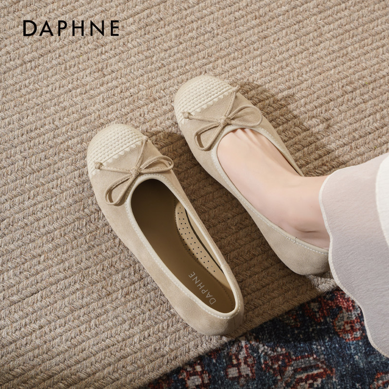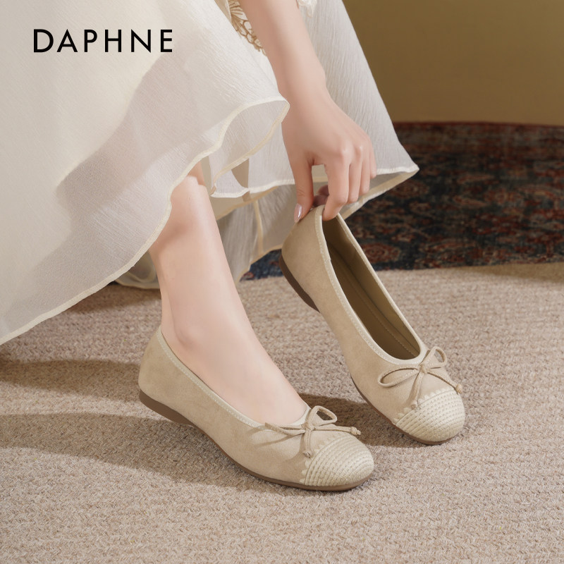 达芙妮平底单鞋女2026新款春季晚晚法式蝴蝶结芭蕾瓢鞋软底妈妈鞋
