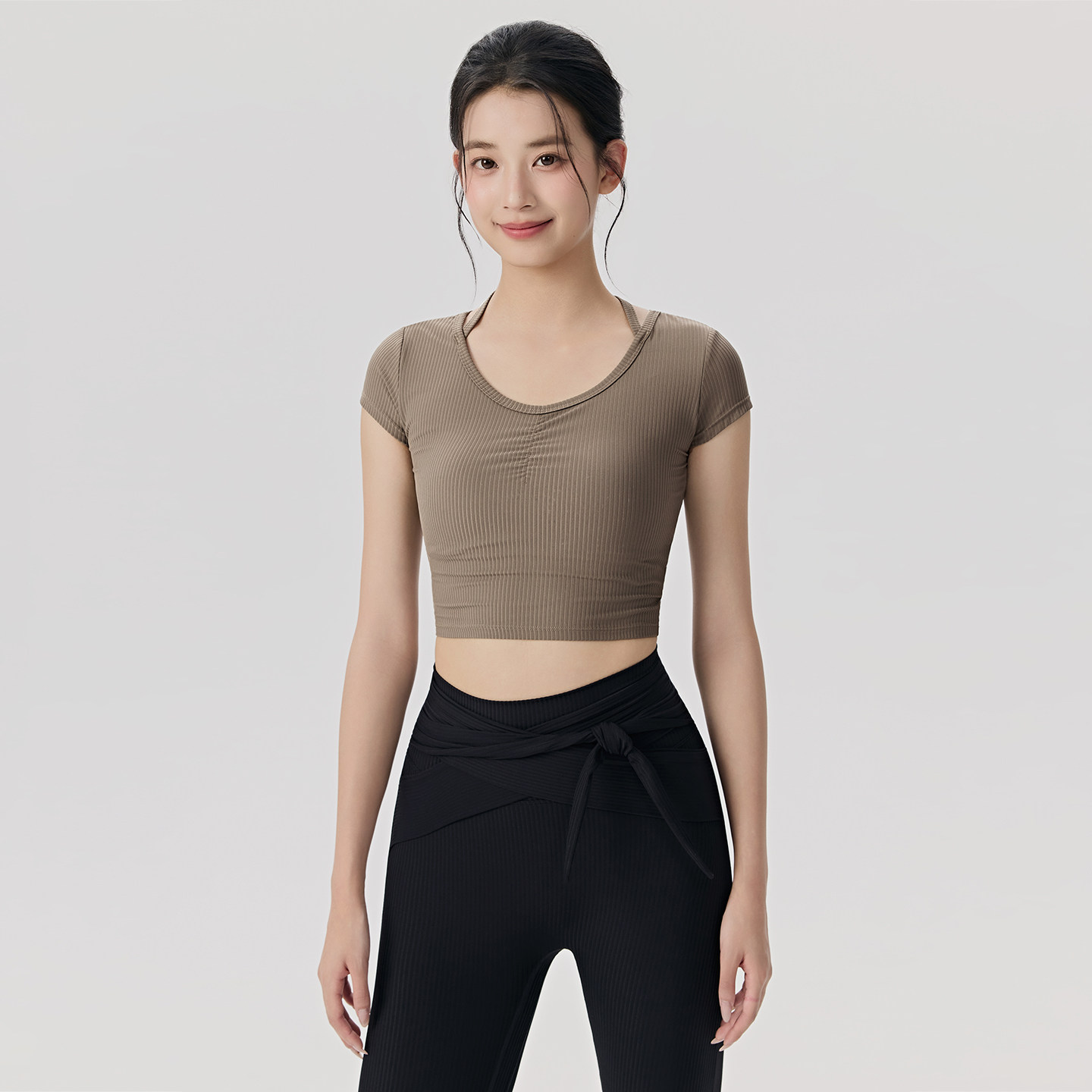 带胸垫瑜伽服女普拉提训练健身上衣2025新款运动跑步套装短袖T恤