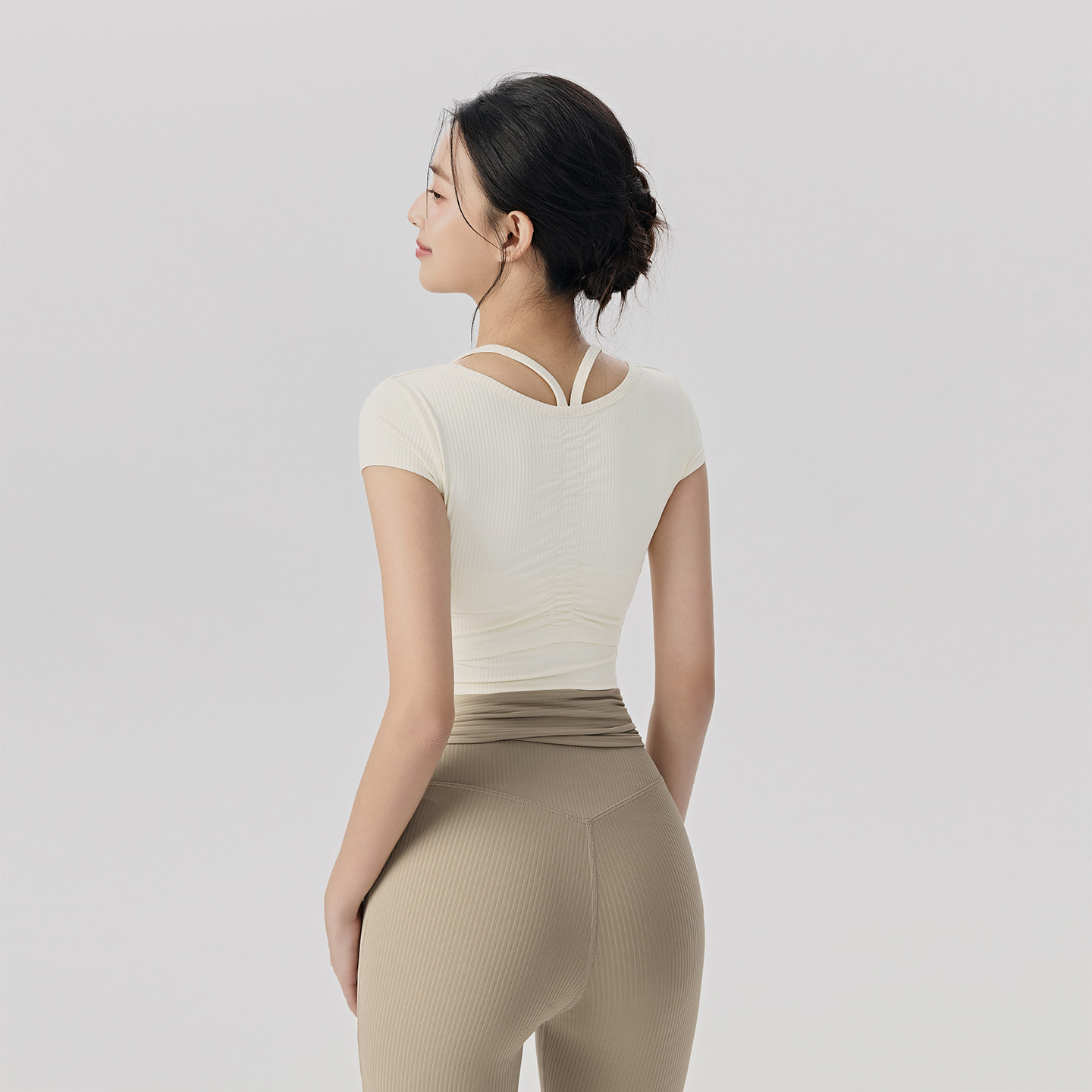 短款修身版型优化身材比例桃心领抽褶设计