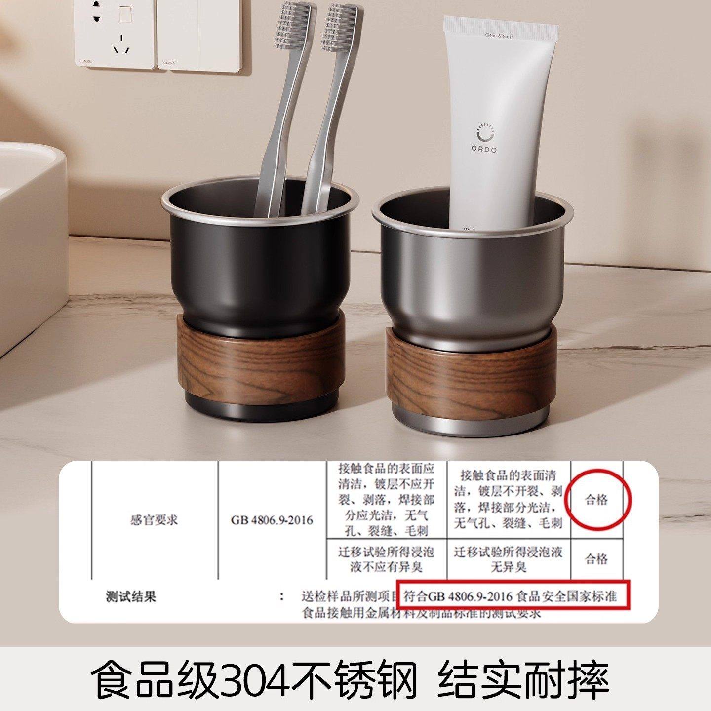 胡桃木牙刷置物架卫生间免打孔壁挂式电动牙刷牙杯漱口杯收纳牙膏