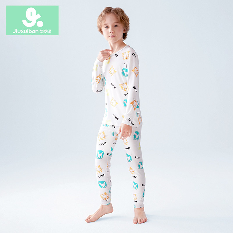 久岁伴儿童秋衣秋裤男童居家透气家居服套装中小童2025秋冬新品