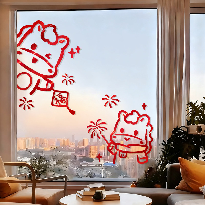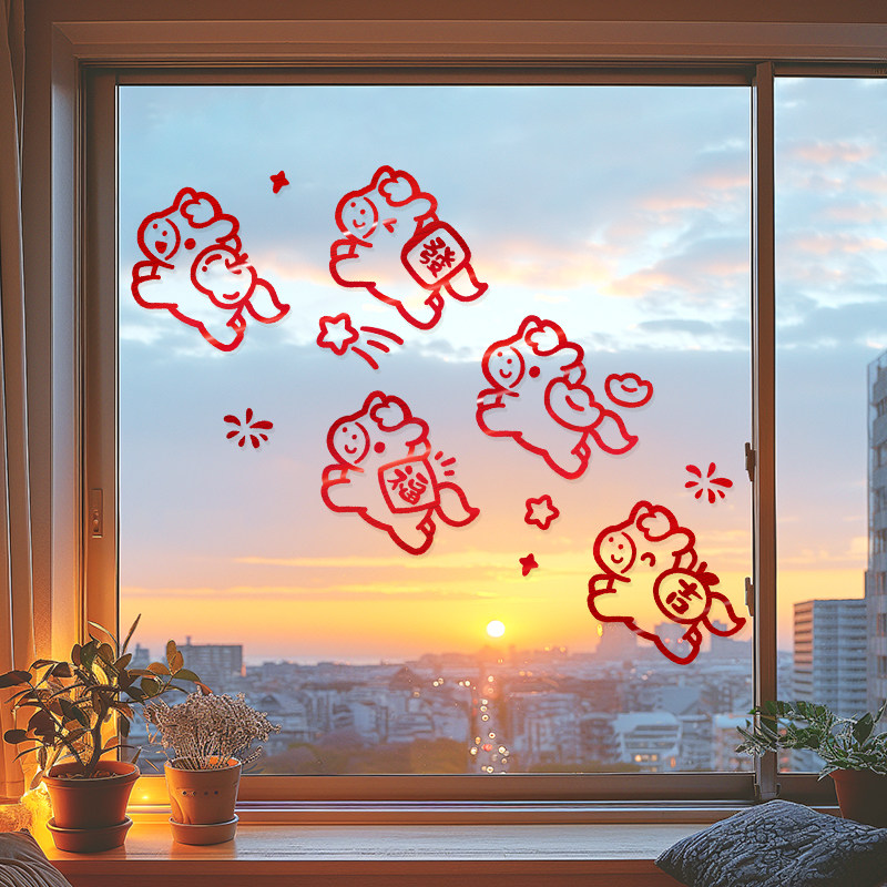 2026新年窗花马年装饰新款玻璃门贴纸静电橱窗贴春节氛围布置贴画