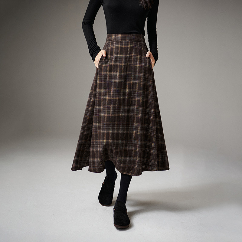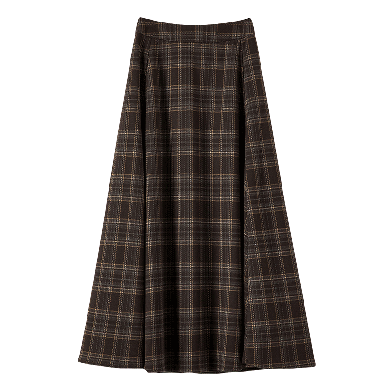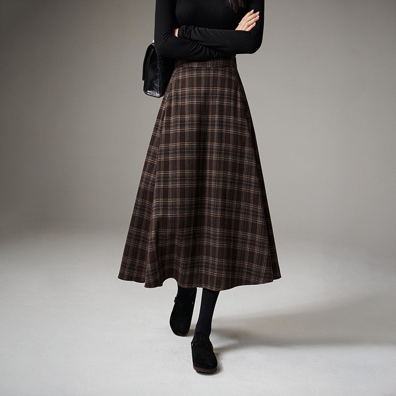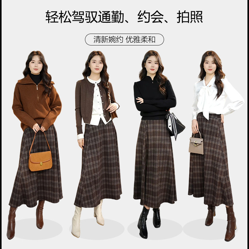 晚白2025年秋冬新款高腰气质裙子复古格纹裙百搭休闲大摆半身裙