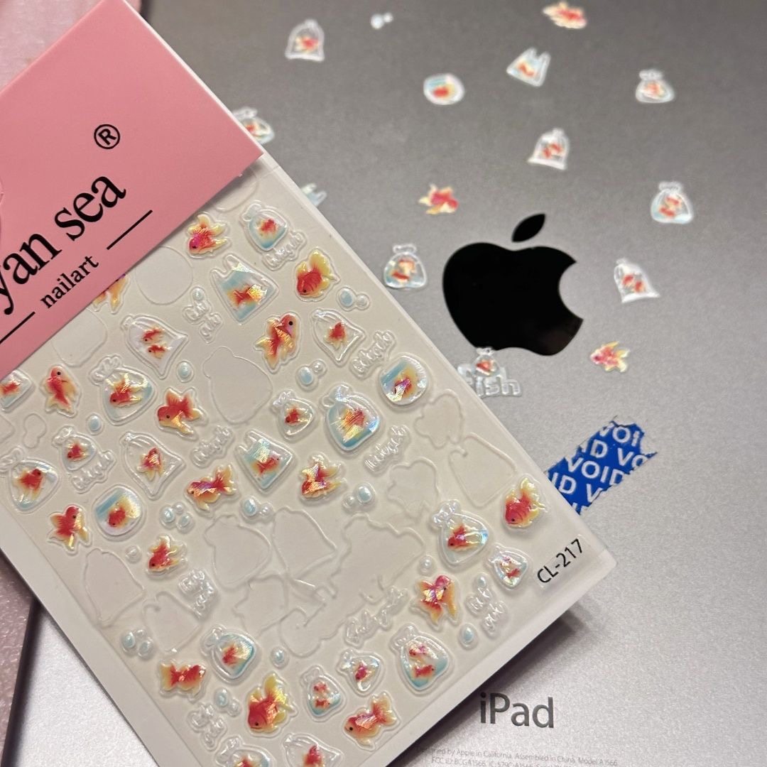 新款夏日贝壳一袋金鱼海星美甲贴纸海洋diy装饰笔杆水杯指甲