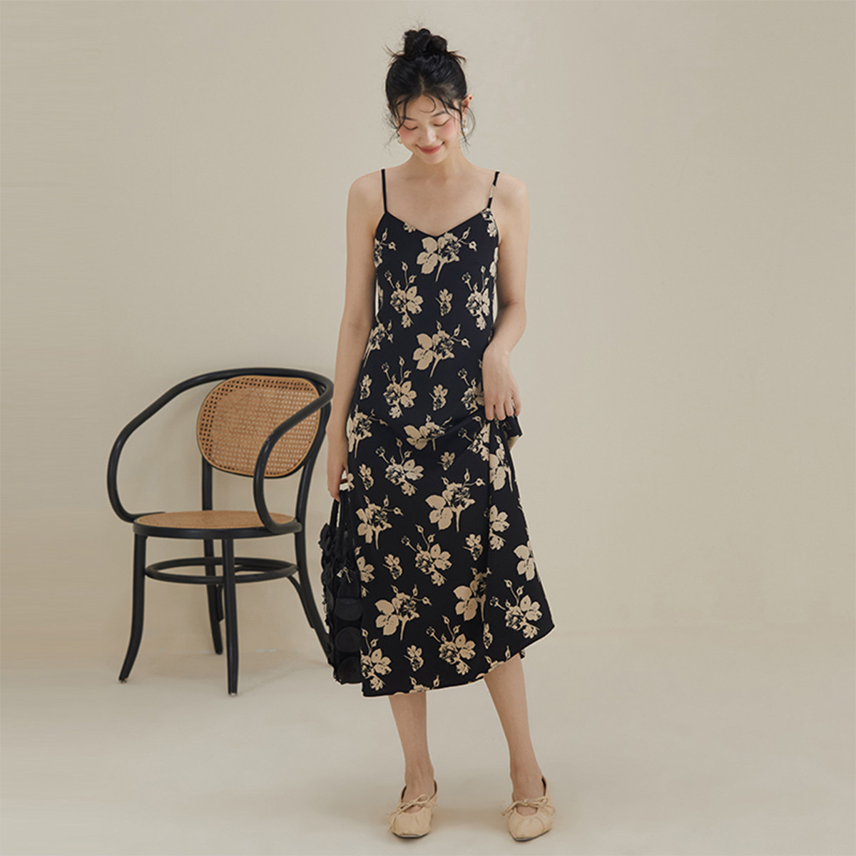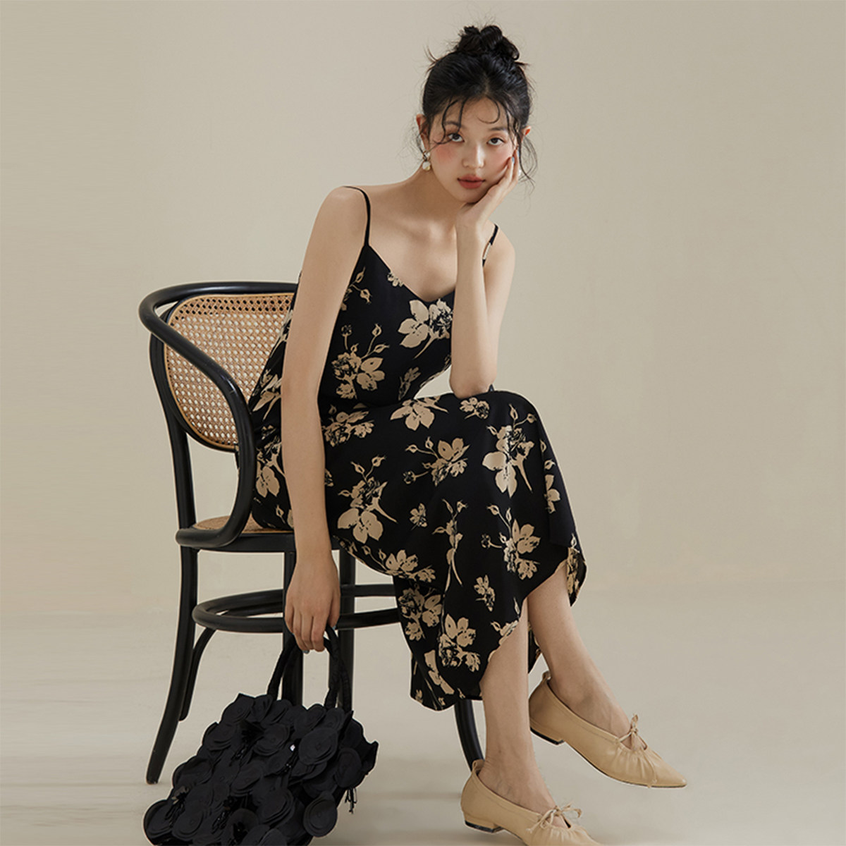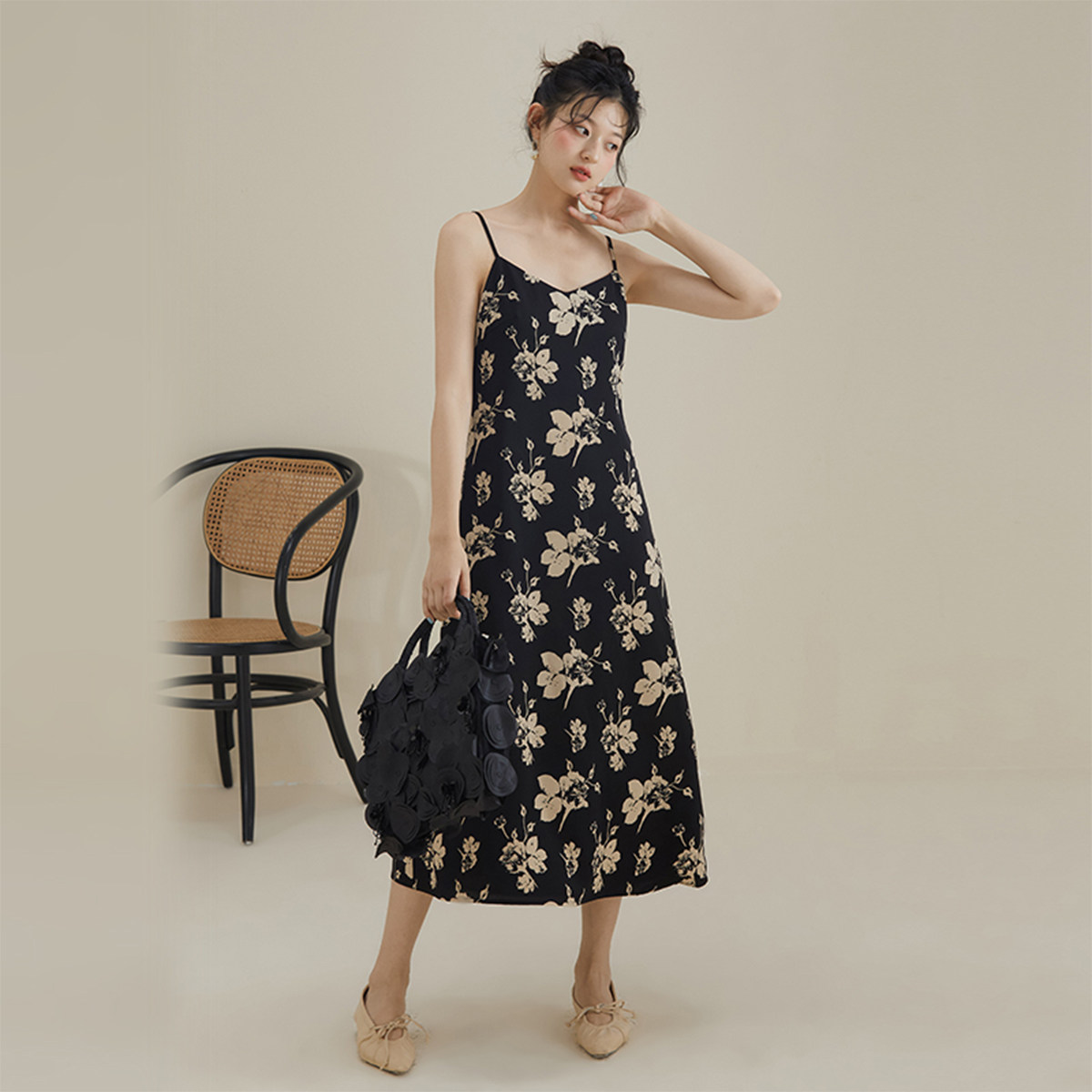 【papi同款】半练带胸垫吊带裙纯欲气质挂脖连衣裙黑裙子粉色长裙