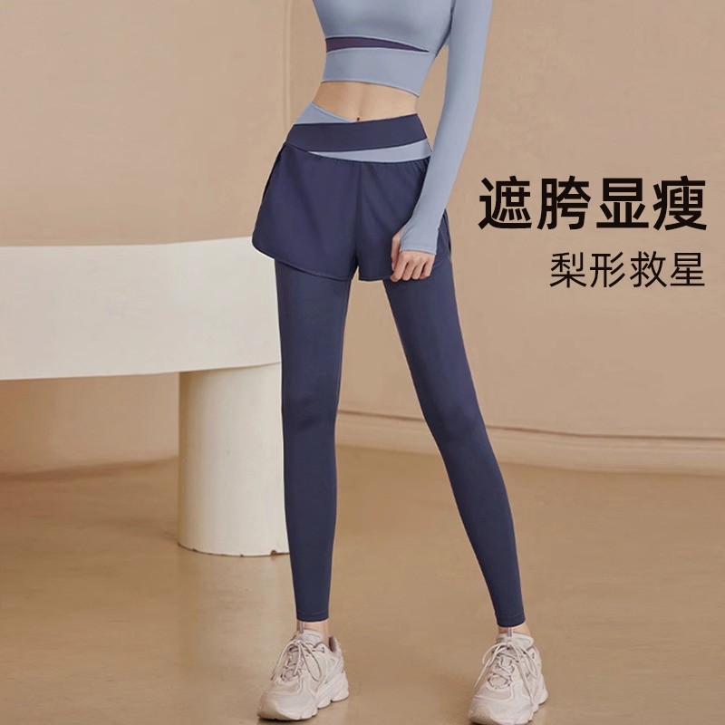健身服长裤高级感女春秋季防走光修身速干遮屁股假两件瑜伽运动裤
