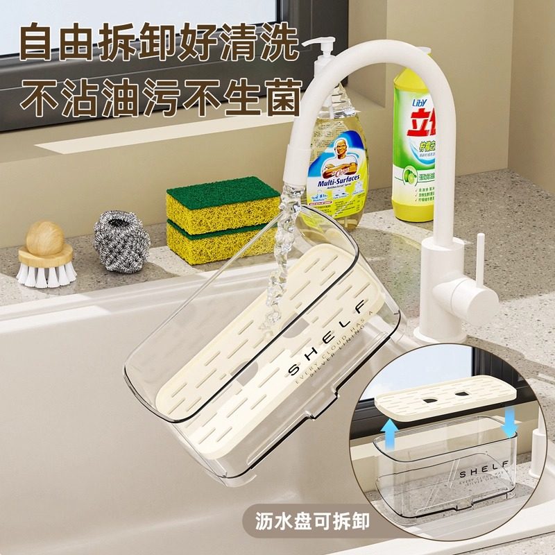 海绵沥水架厨房台面免打孔洗碗水槽池抹布收纳盒水龙头窄边置物架
