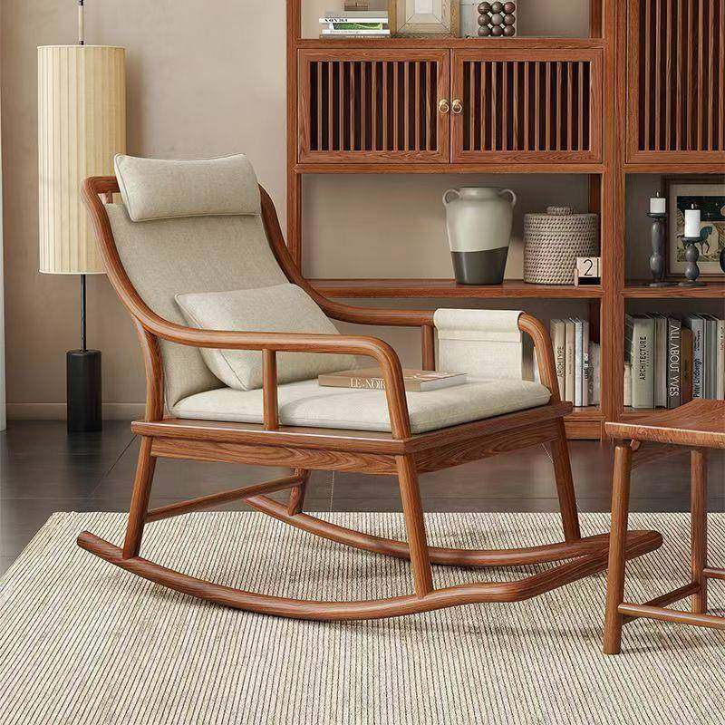 新中式全实木摇椅榆木大人家用阳台休闲躺椅客厅家具成人午睡椅子