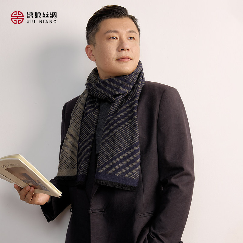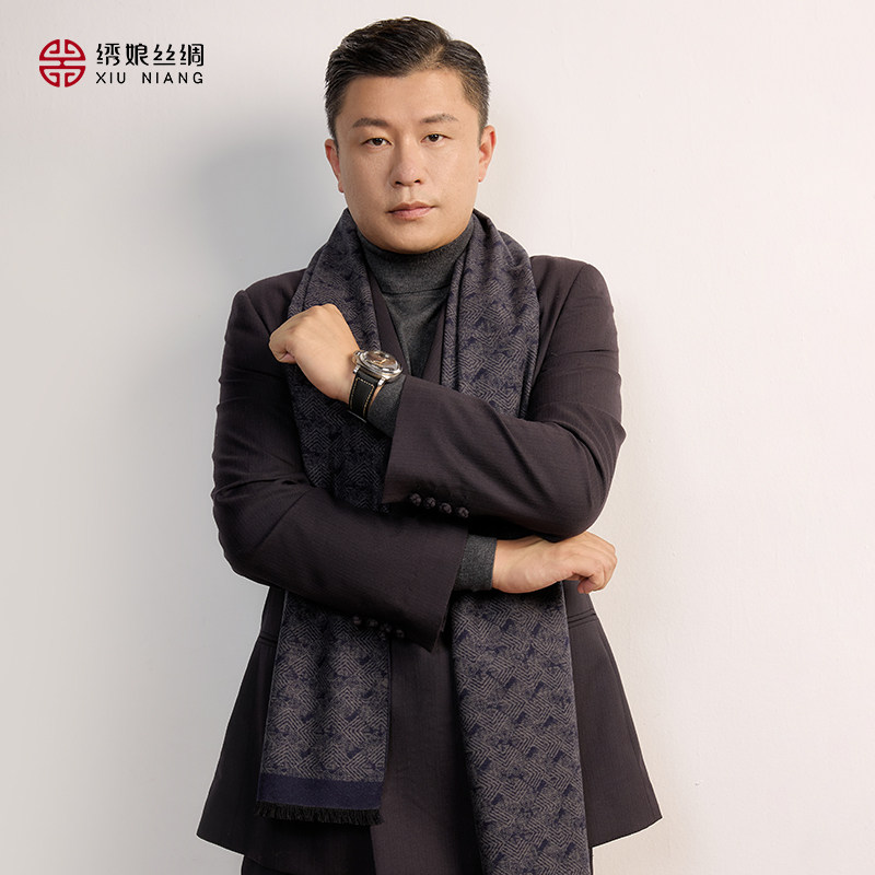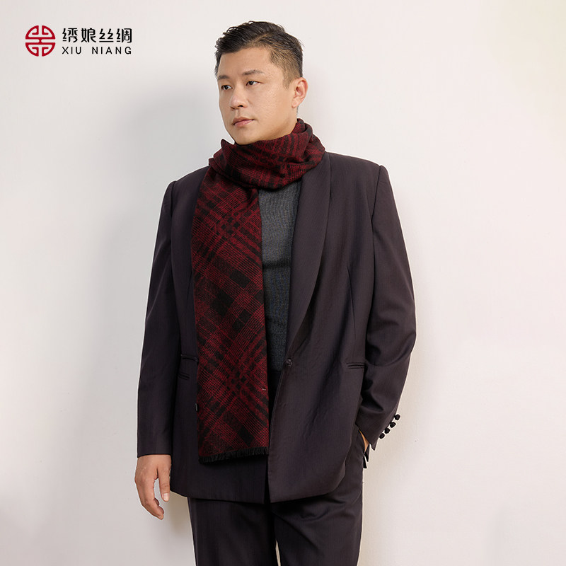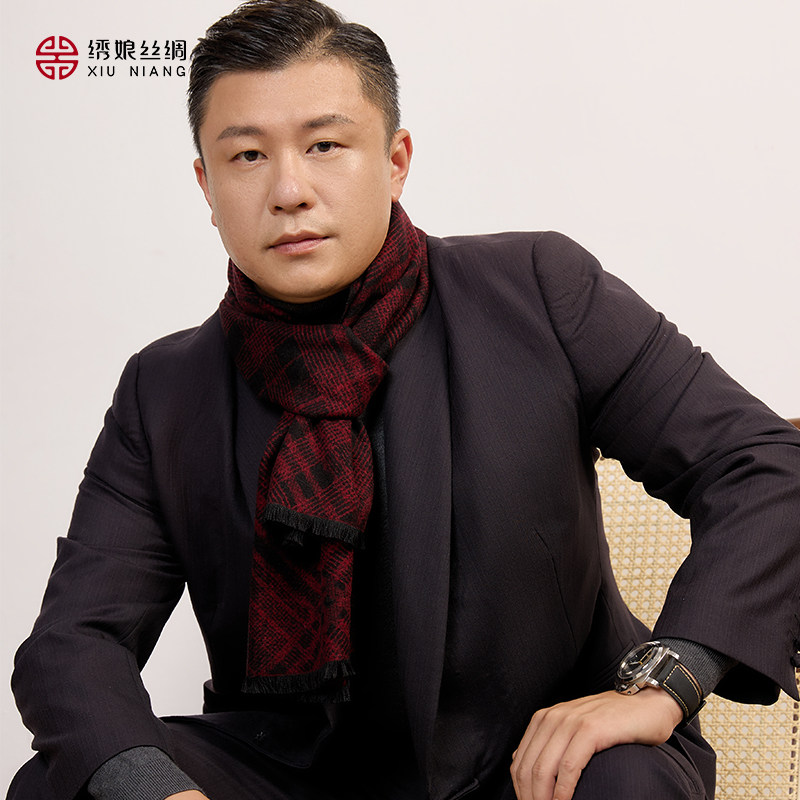 绣娘丝绸围巾男100%桑蚕丝新款真丝绒围脖护颈送男友爸爸生日礼物