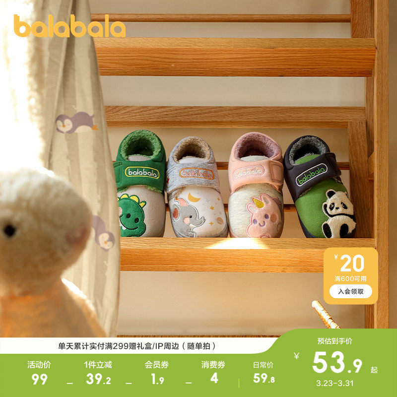 巴拉巴拉童鞋儿童秋冬棉拖鞋包跟家居外穿鞋加绒魔术贴设计感软底