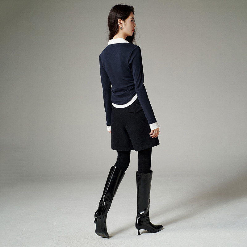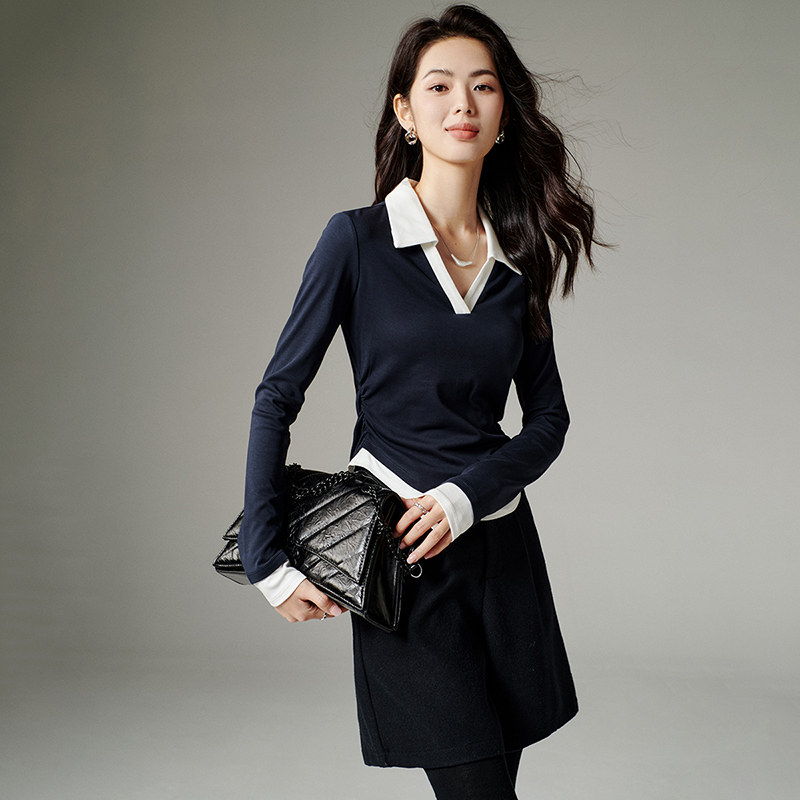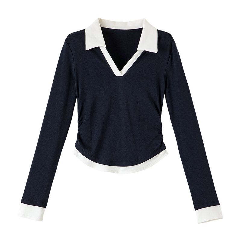 晚白【断码清仓】2025冬棉翻领上衣气质掐腰干练T恤衫女