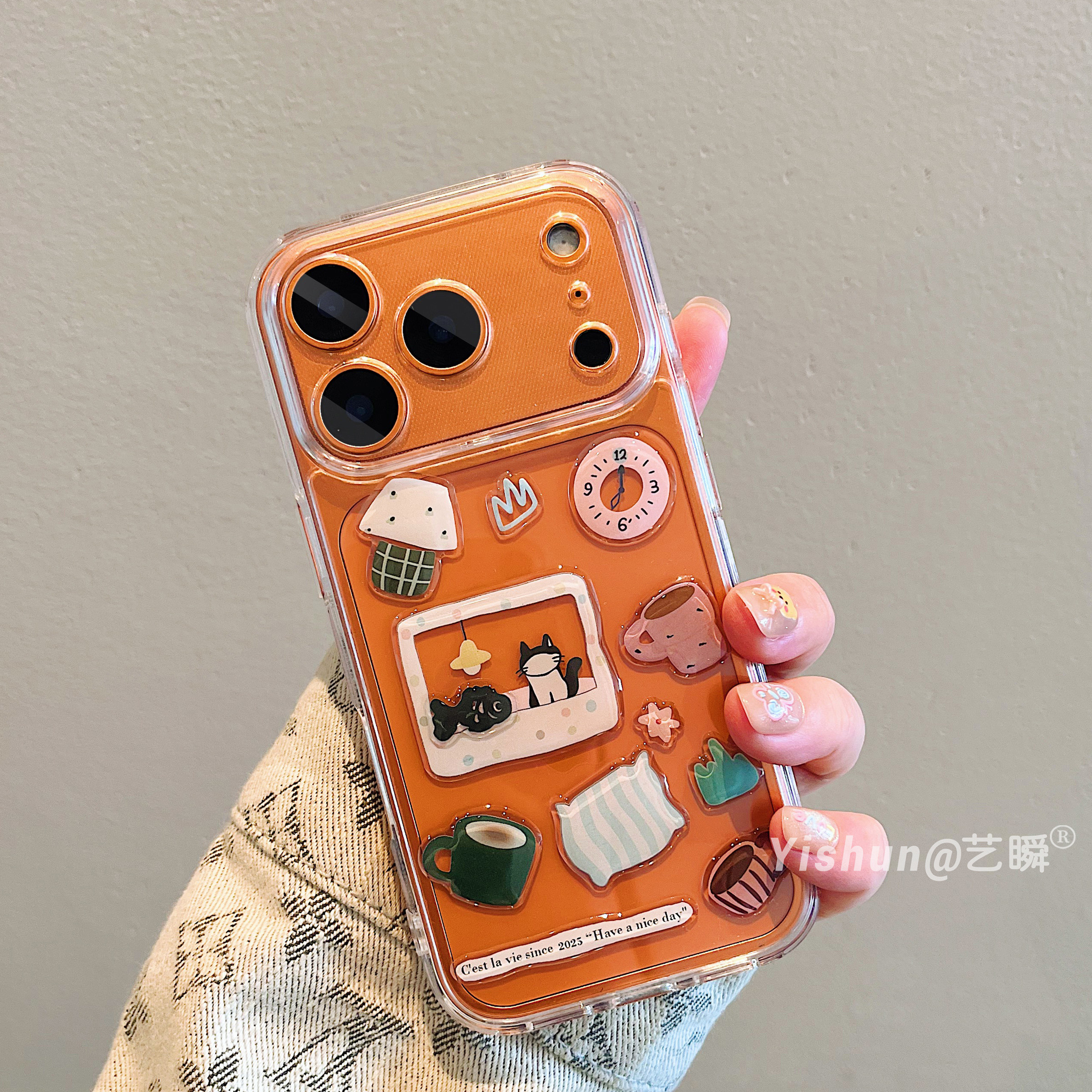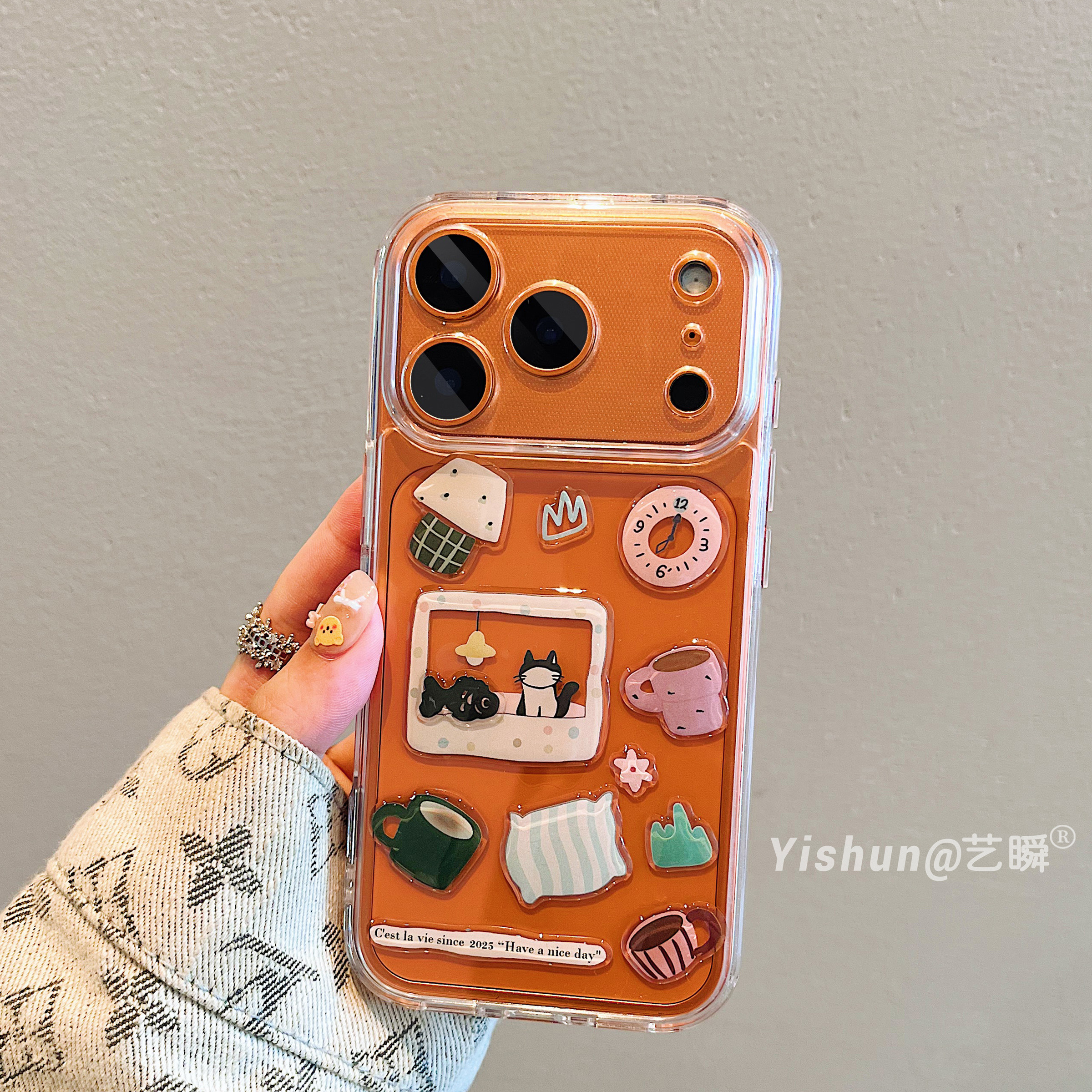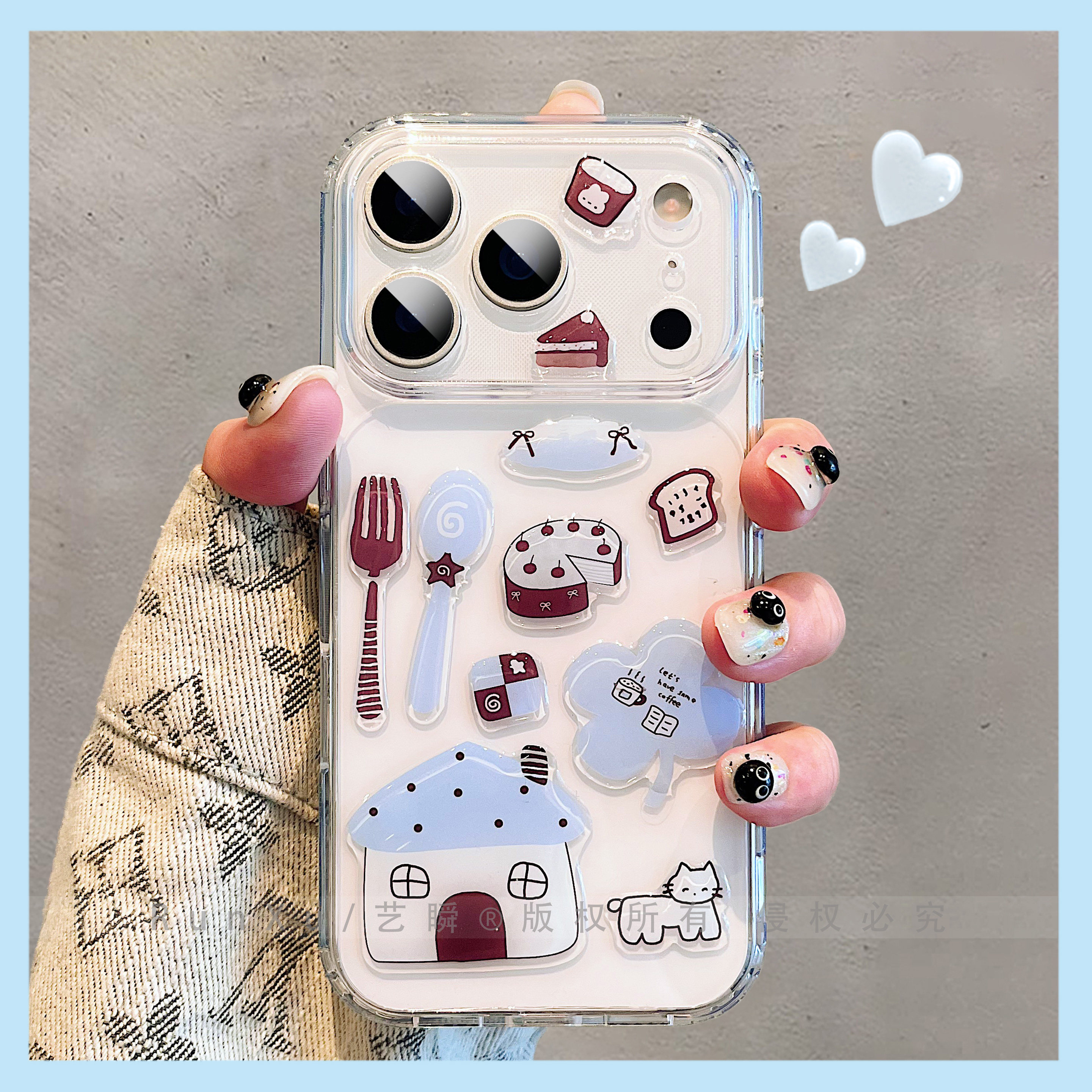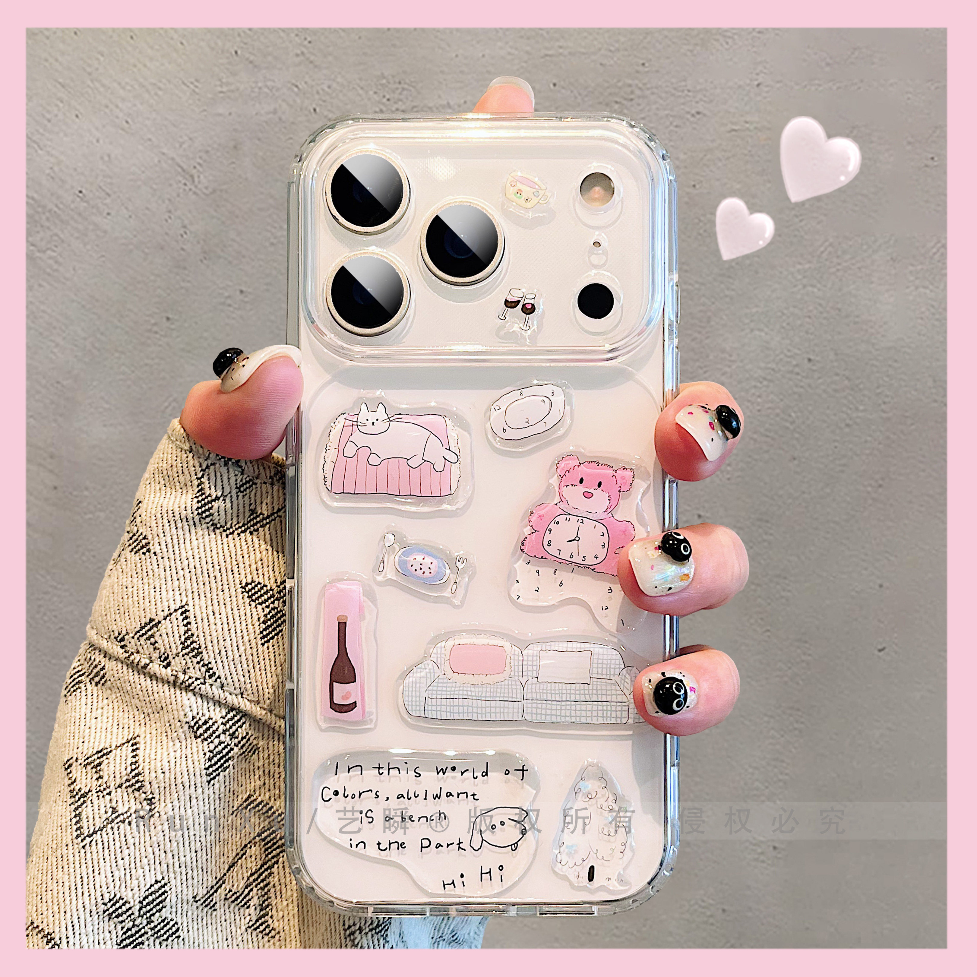 高透精孔DIY透明小鱼猫咪适用苹果17ProMax个性手机壳iPhone16高级韩系14plus简约13透明全包15女款Air保护套