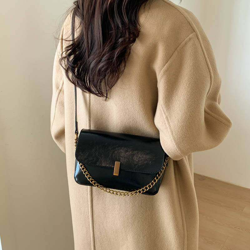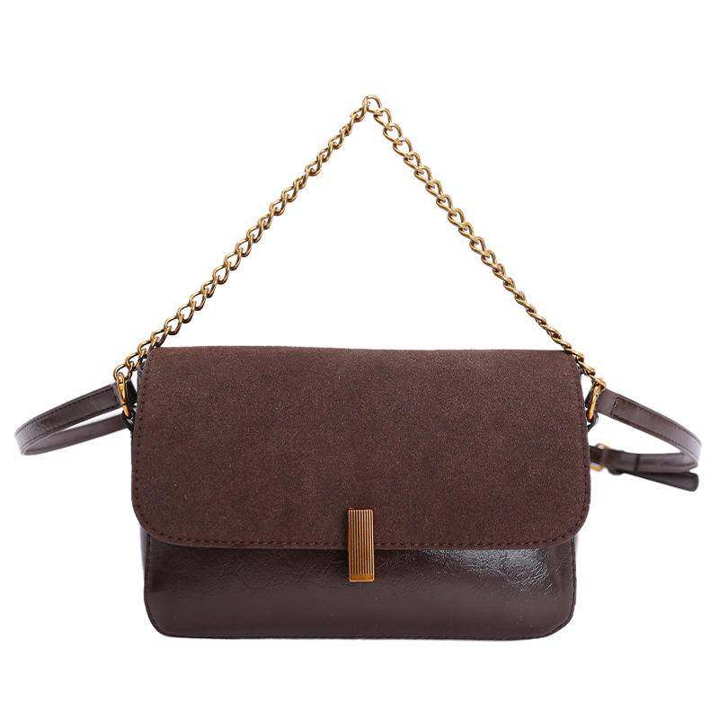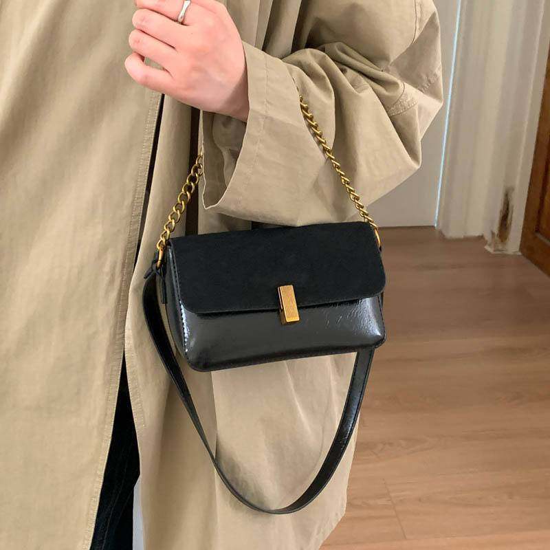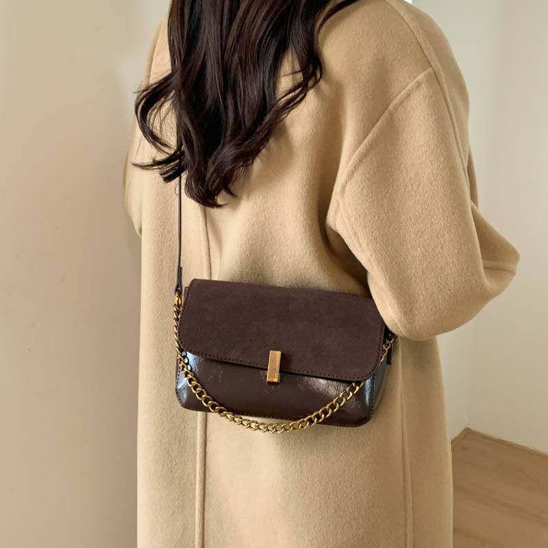 爱马女仕复古绒面手提女包时尚百搭链条小方包新款单肩斜挎包包包