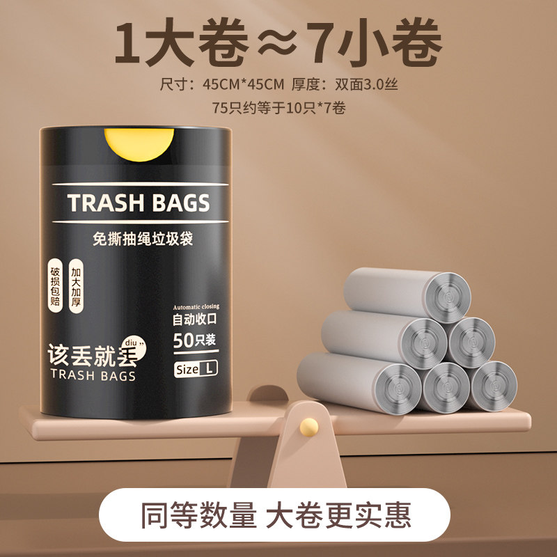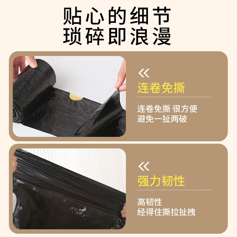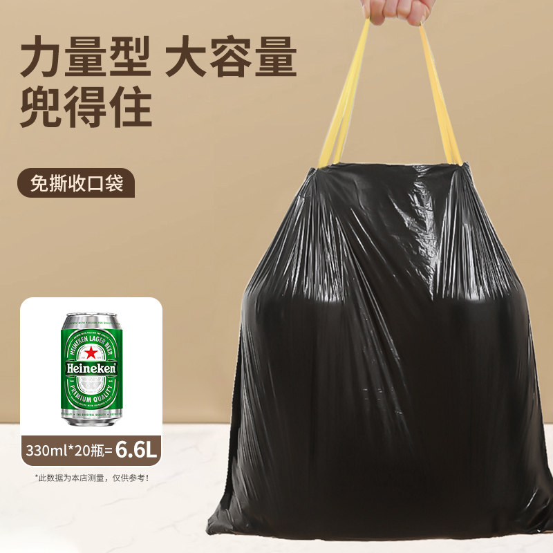 免撕抽绳家用垃圾袋加厚手提式实惠装厨房黑色大号特超厚塑料袋子