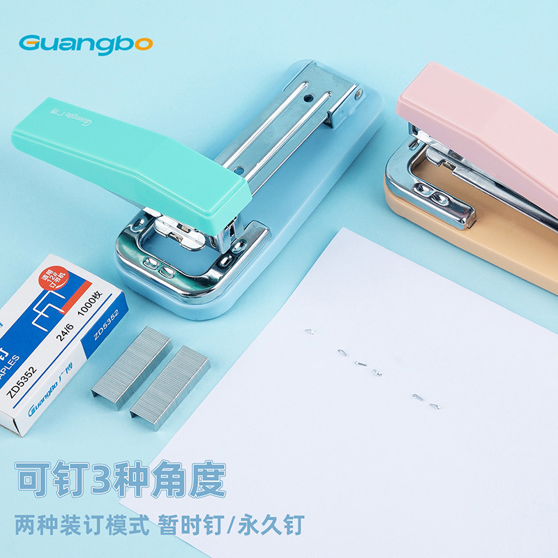 广博可旋转订书机学生用订书器办公文具用品中型号加厚钉书机多功能省力大容量钉仓厚书订中缝装订不易卡钉