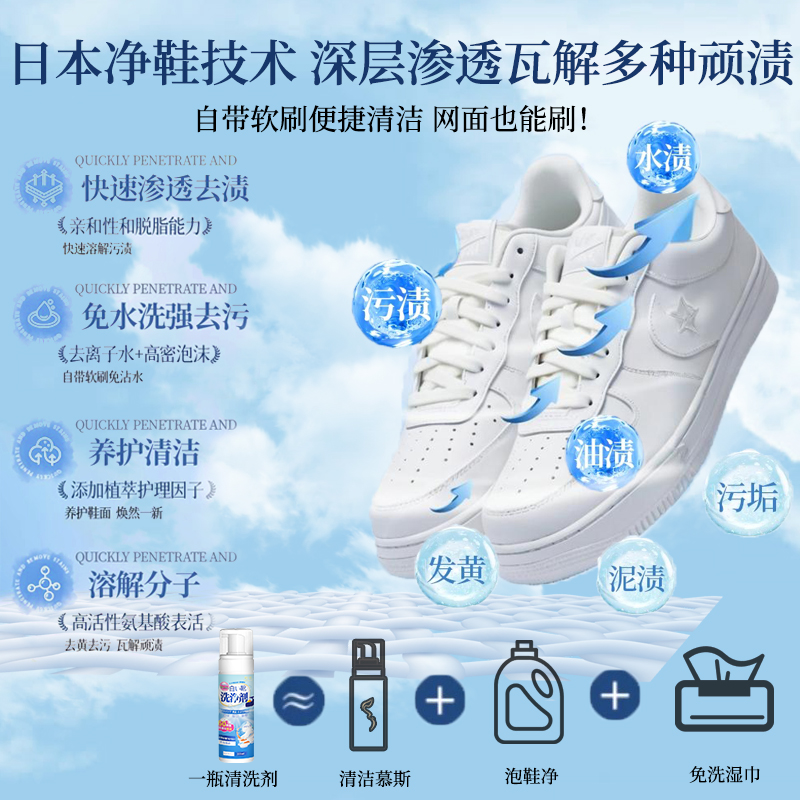 小白鞋清洗剂懒人洗鞋专用生物酶泡泡粉去污去黄增白刷鞋清洁神器