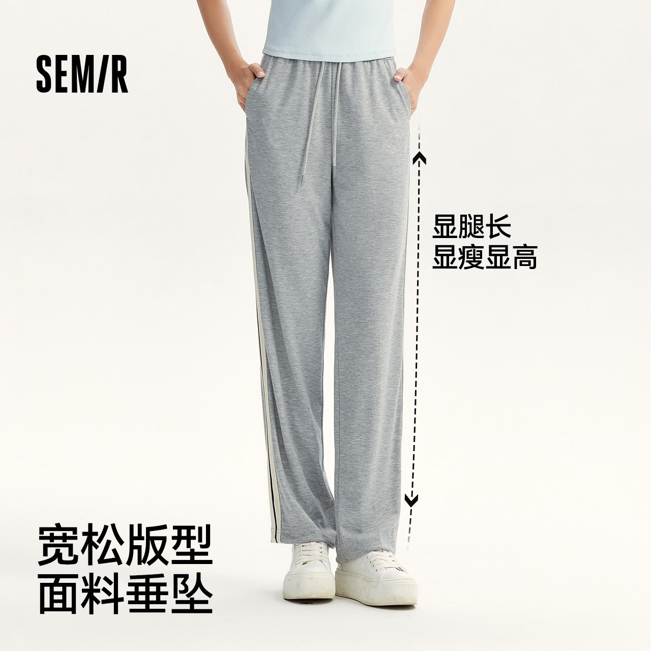 森马休闲裤女松紧腰撞色阔腿裤显腿长秋季时尚女生抽绳卫裤运动风