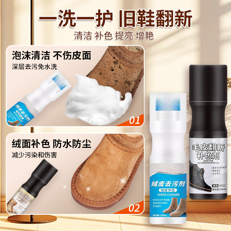 雪地靴补色剂勃肯鞋清洗剂磨砂麂皮翻毛皮鞋粉清洁护理翻新绒喷雾