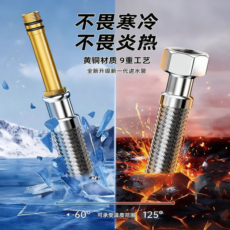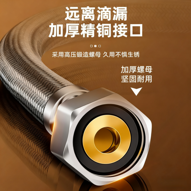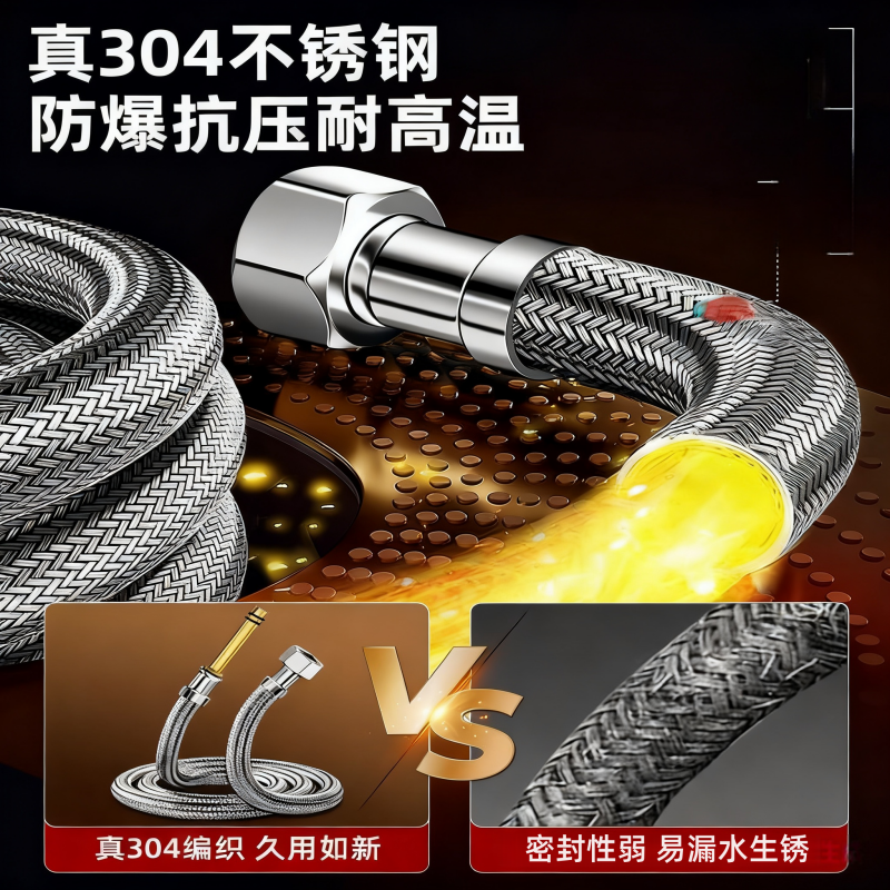 304不锈钢编织软管加长精铜螺纹杆洗脸盆冷热进水管洗菜盆防爆管
