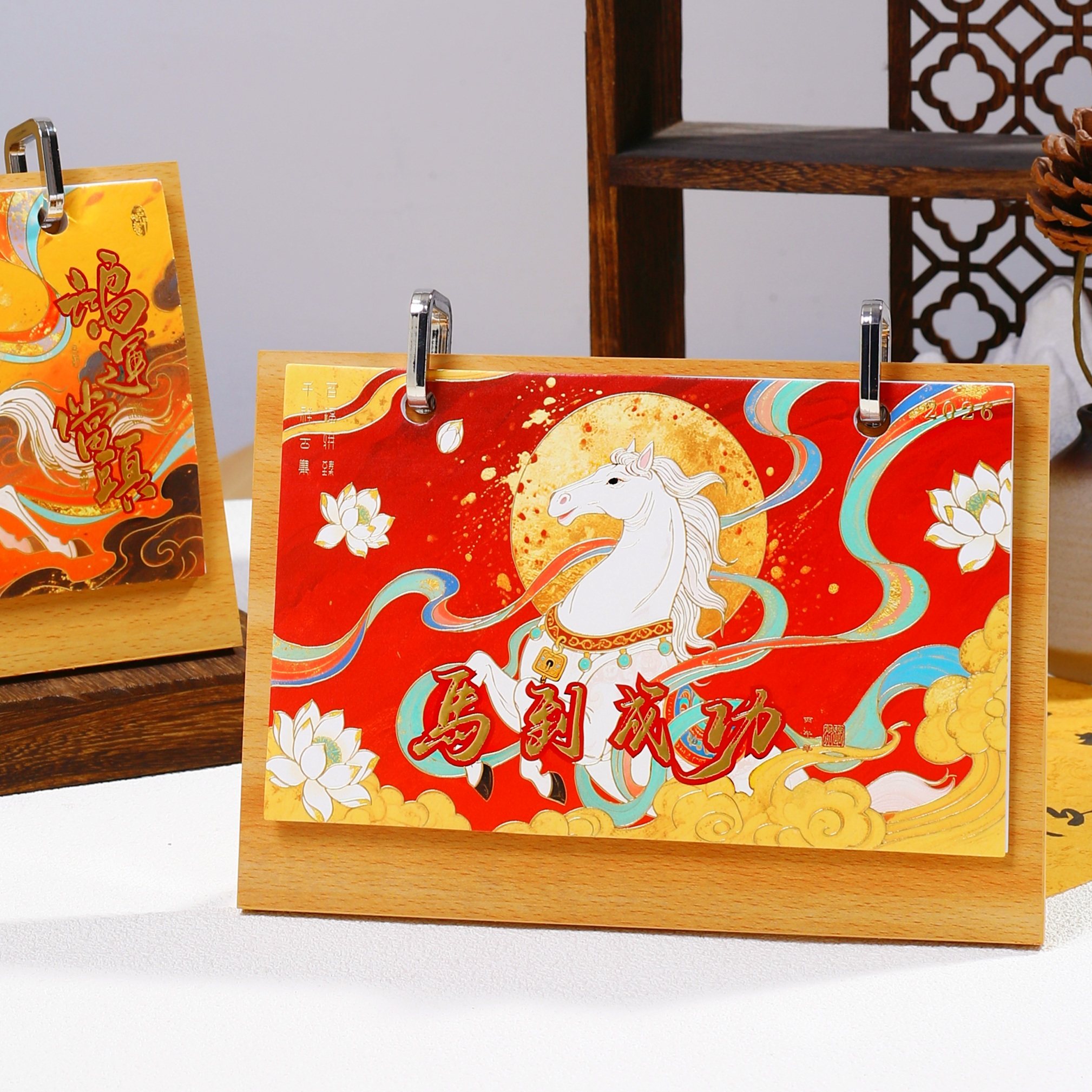 台历定制2026年新款创意木质桌面摆件订制马年商务办公室记事月历礼盒装自律打卡工作计划本日历企业公司定做