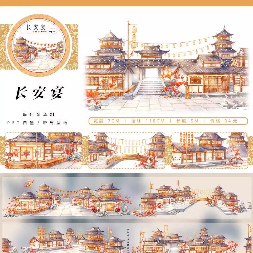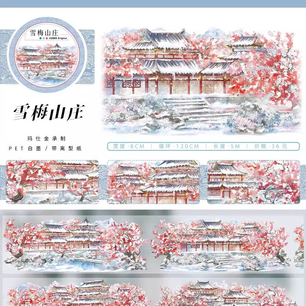 ZERO原创#一月新品迎新春雪梅山岩人物古风造景建筑胶带手帐拼贴