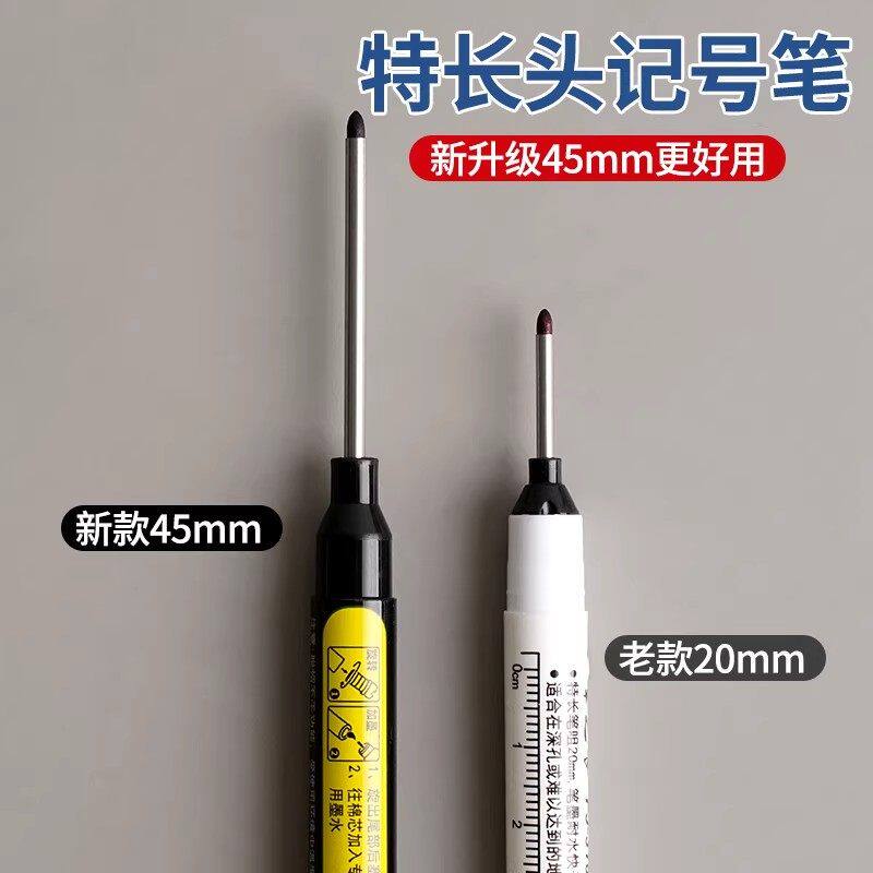 加长超长头记号笔油性木工用瓷砖工地长嘴深孔划线笔板材打孔油性