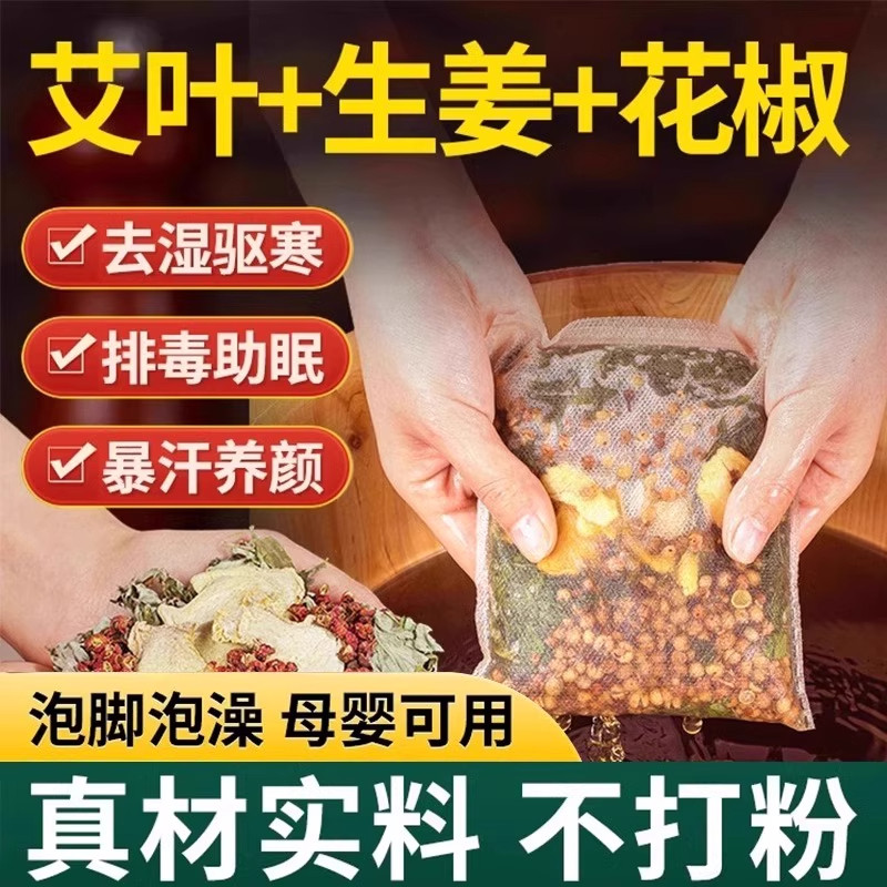 泡脚药包去湿气排毒助睡眠艾草叶生姜花椒红花中药非祛湿寒足浴包