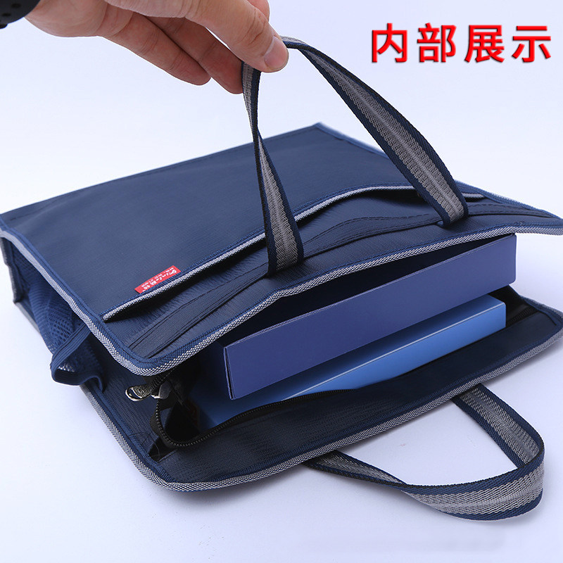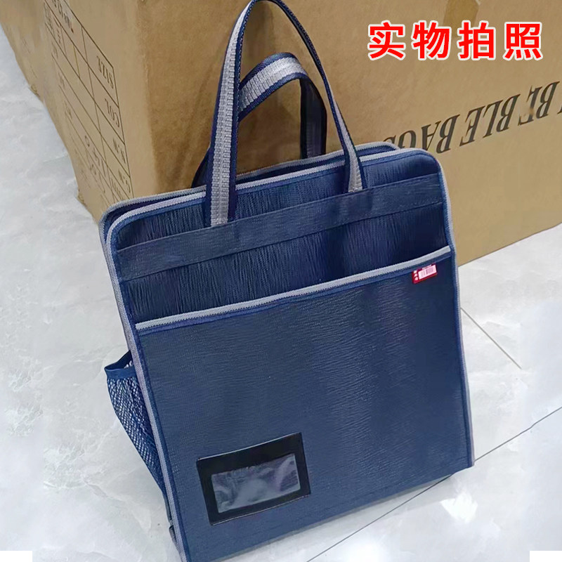 鑫斯特909树皮纹竖款手提文件袋会议公文包双侧带网兜补课袋定制