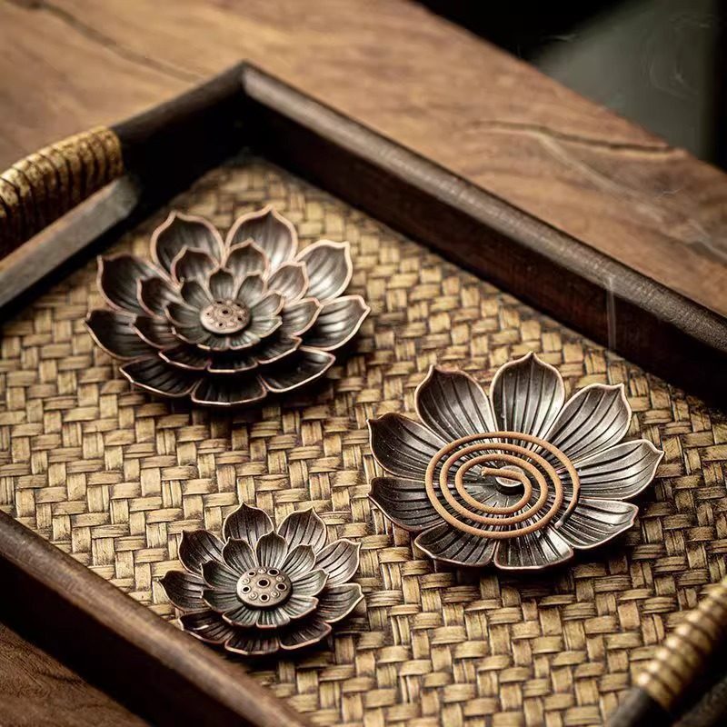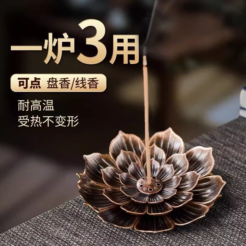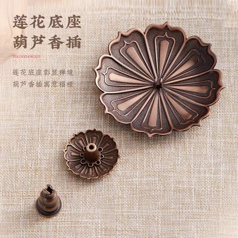 线香底座香炉檀香熏香炉家用香座香托沉香铜香插香室内香薰炉莲花