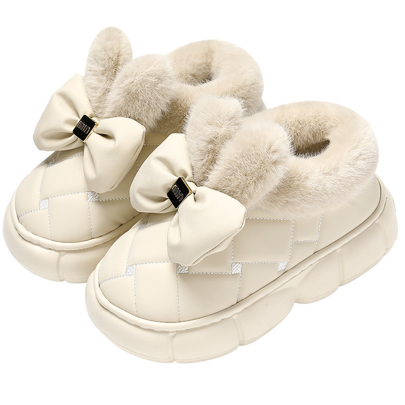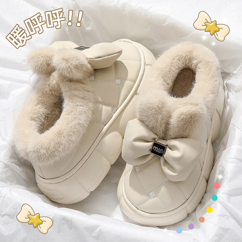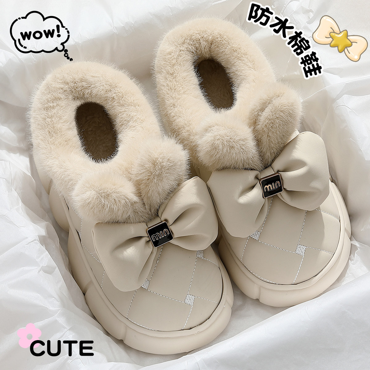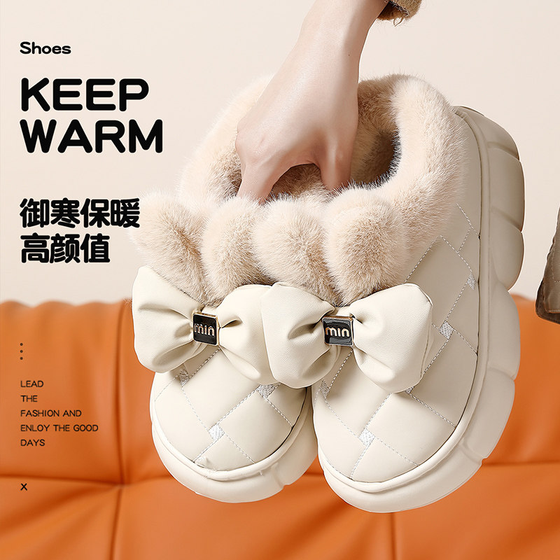 可爱蝴蝶结棉拖鞋女冬季2025新款室内家居毛绒保暖包跟外穿棉鞋女