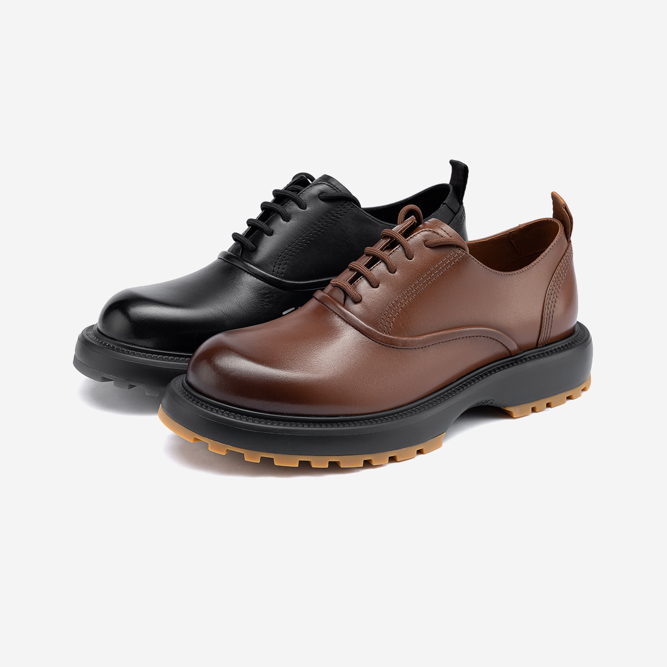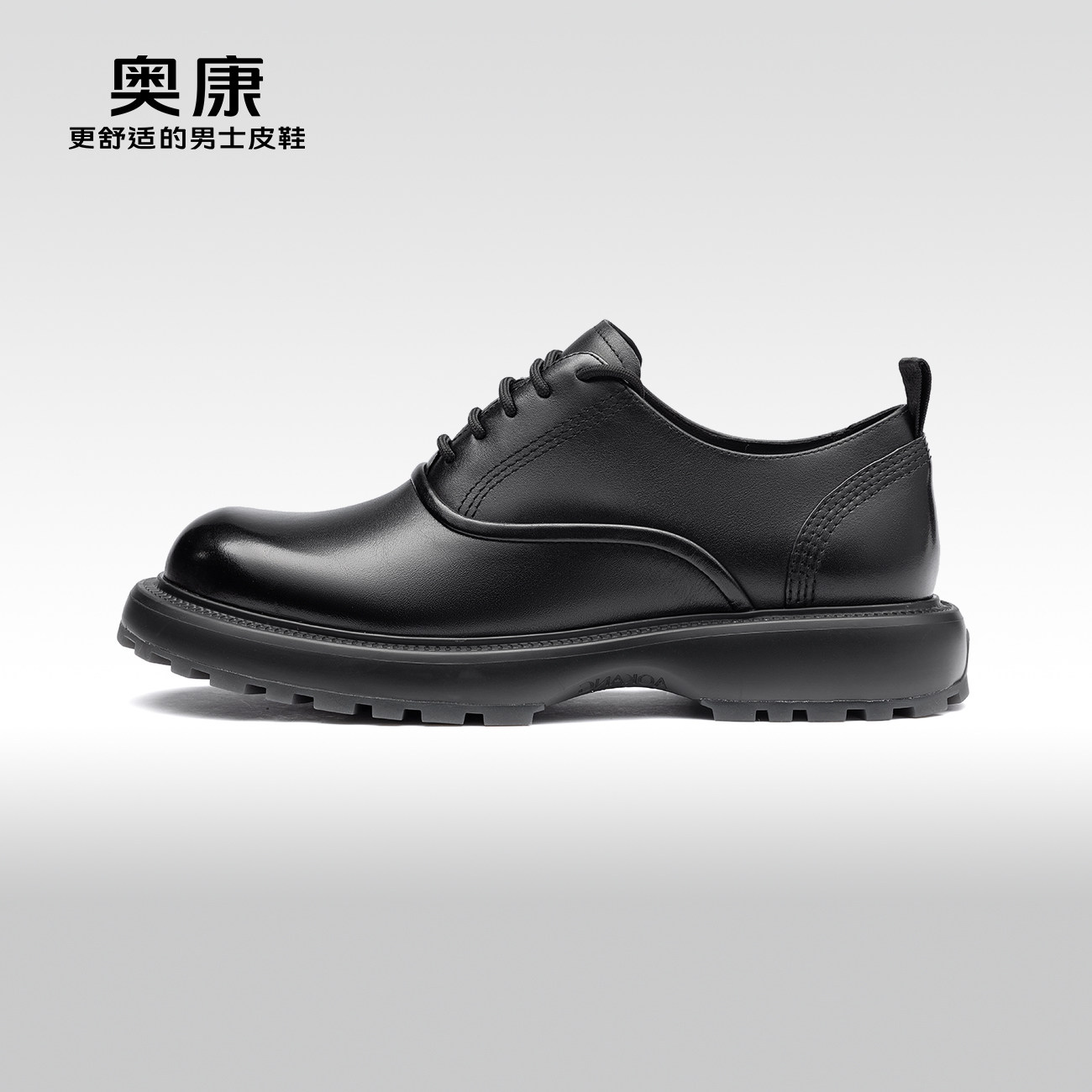 奥康男鞋春秋季时尚商务休闲皮鞋男真皮软面系带办公室百搭爸爸鞋