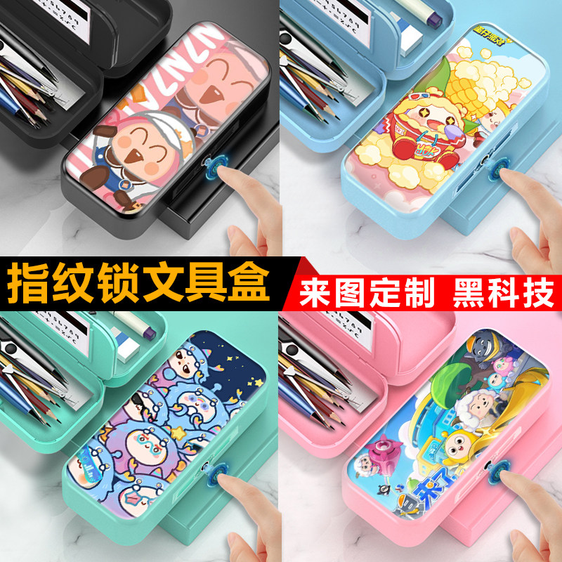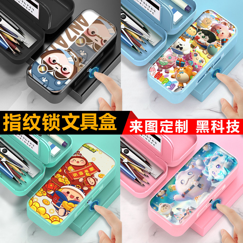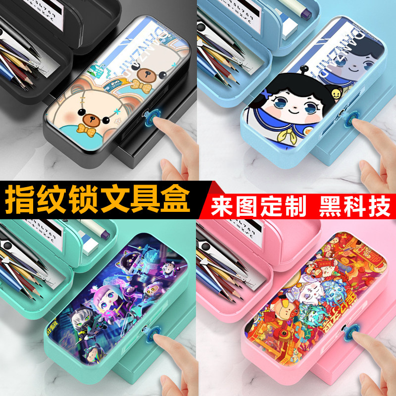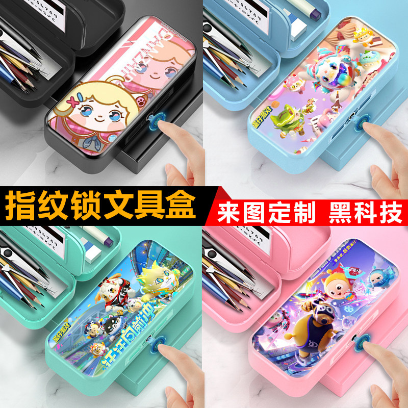 指纹解锁文具盒多功能笔盒男女塑料磁扣铅笔盒蛋仔派对dongdong羊