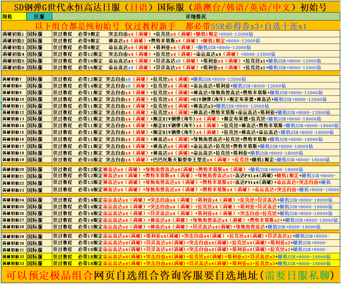 SD高达G世纪世代永恒港台服国际服开局初始号自选组合号自抽日服