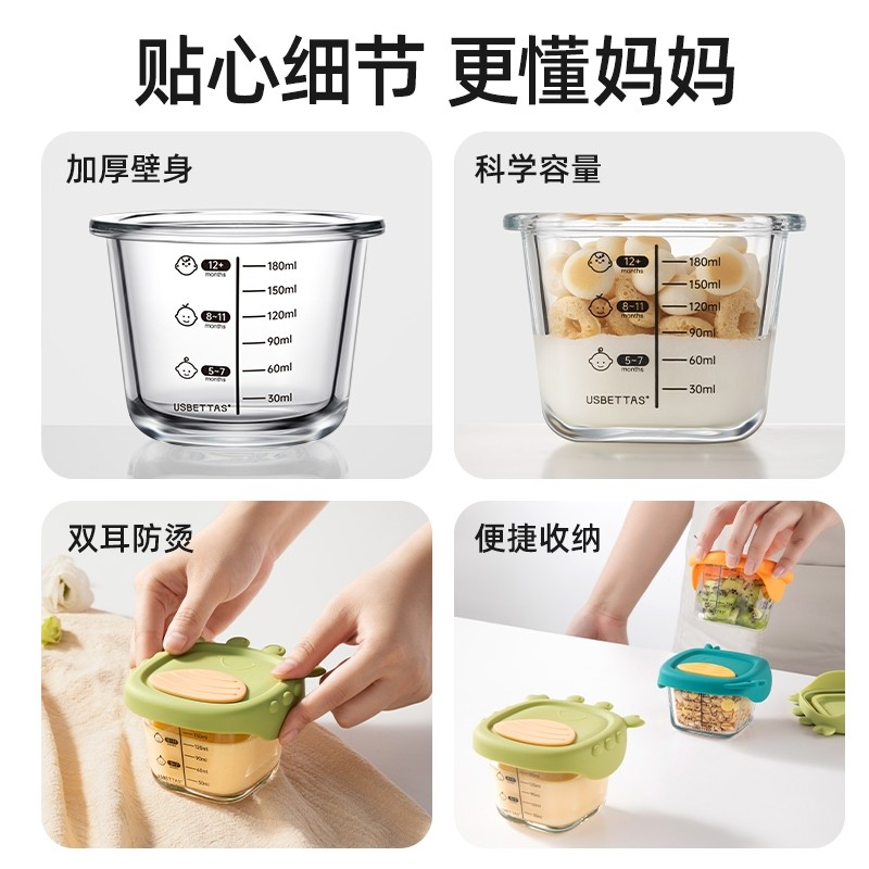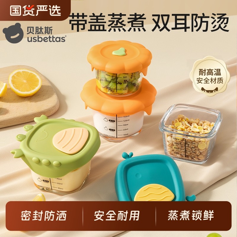 贝肽斯宝宝玻璃辅食碗婴儿专用辅食工具全套儿童餐具可蒸煮辅食盒