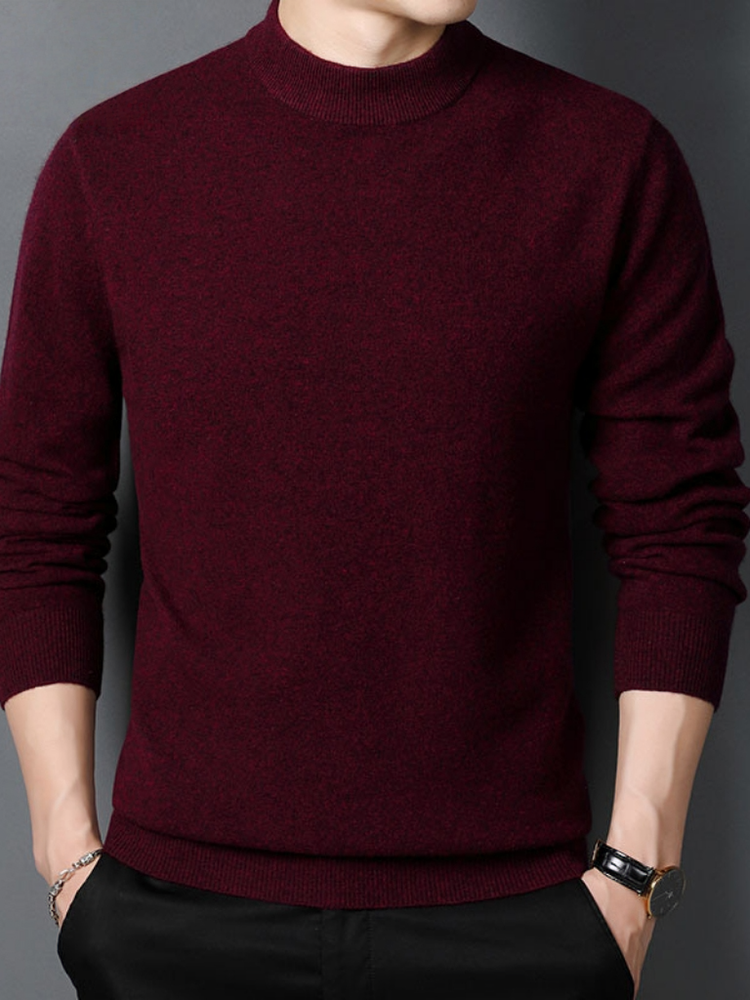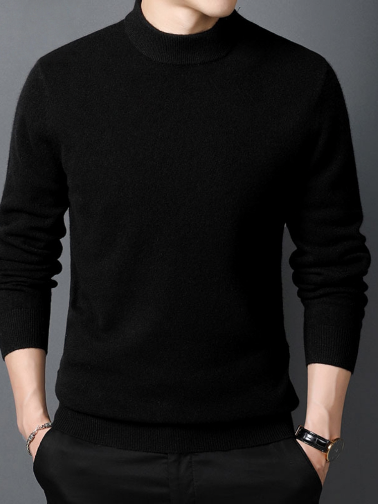 双股加厚100%纯羊毛衫半高领男毛衣秋冬季宽松套头针织打底羊绒衫