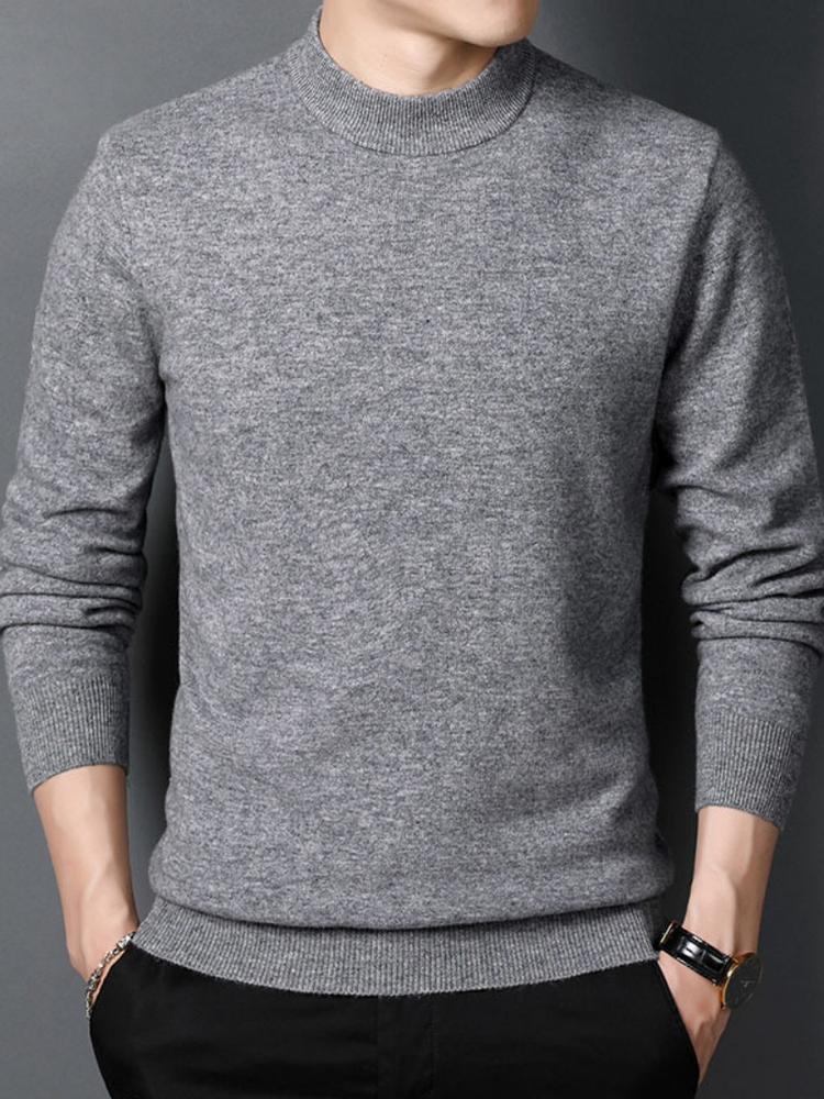 罗蒙100%纯羊毛衫男士半高领加厚冬季毛衣中领针织提花圆领羊绒衫