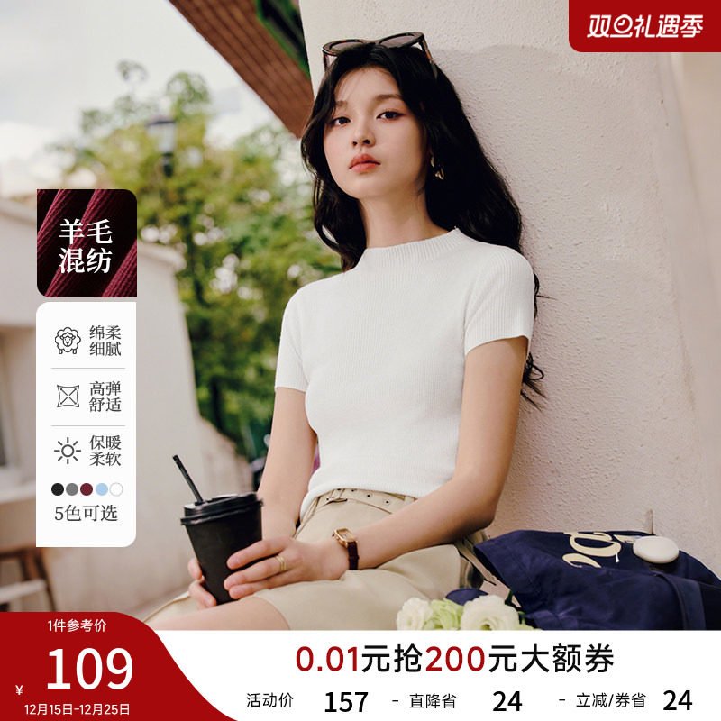 秋水伊人圆领毛针织衫2025年秋冬新款毛衣内搭打底短袖超好看上衣