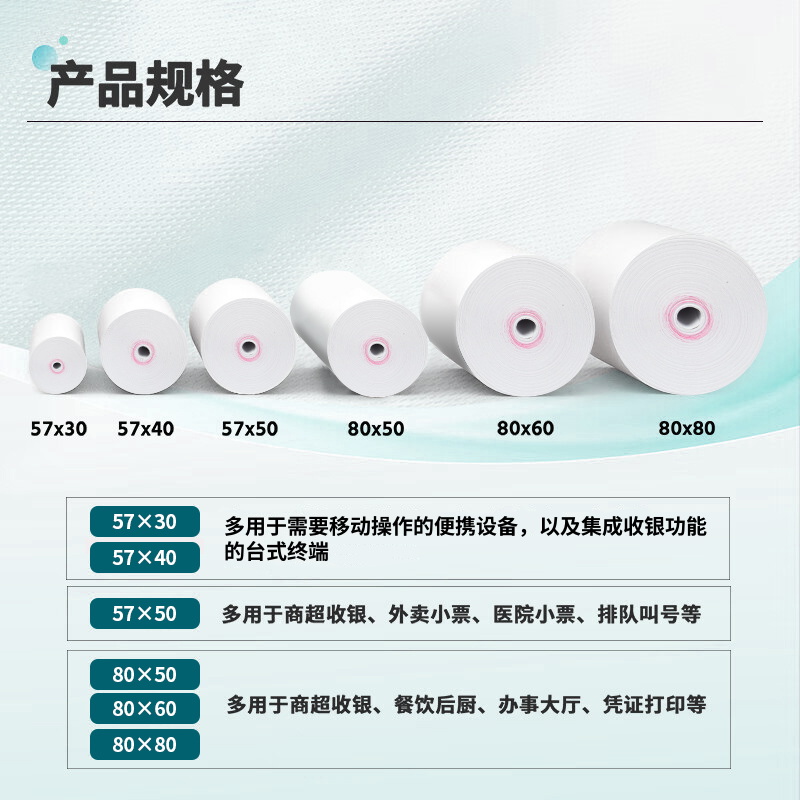 【新绿天章】热敏打印纸57*50*40 收银纸80*80热敏纸超市美团外卖整箱无管芯打印机纸商用外卖小票餐厅商用纸
