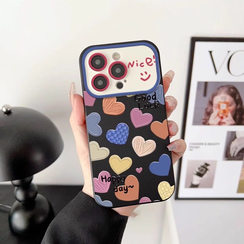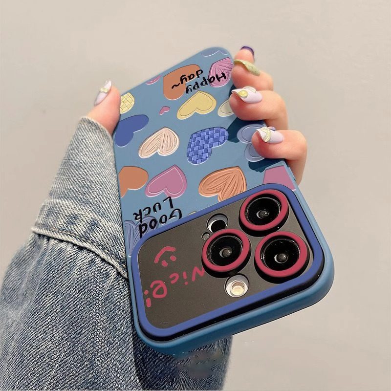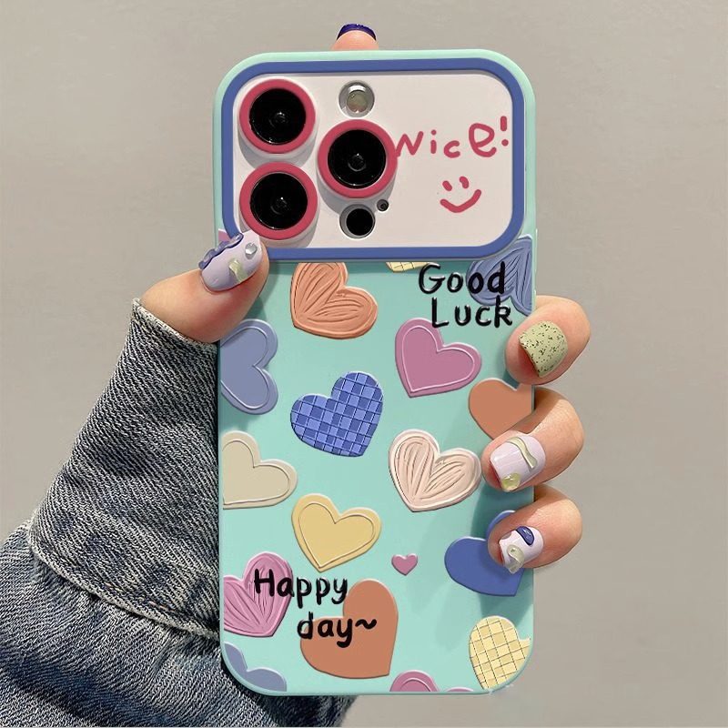 酷图适用苹果15promax清新爱心手机壳iphone14高级感女款plus镜头全包13防摔小众12个性保护套超薄11新款甜美