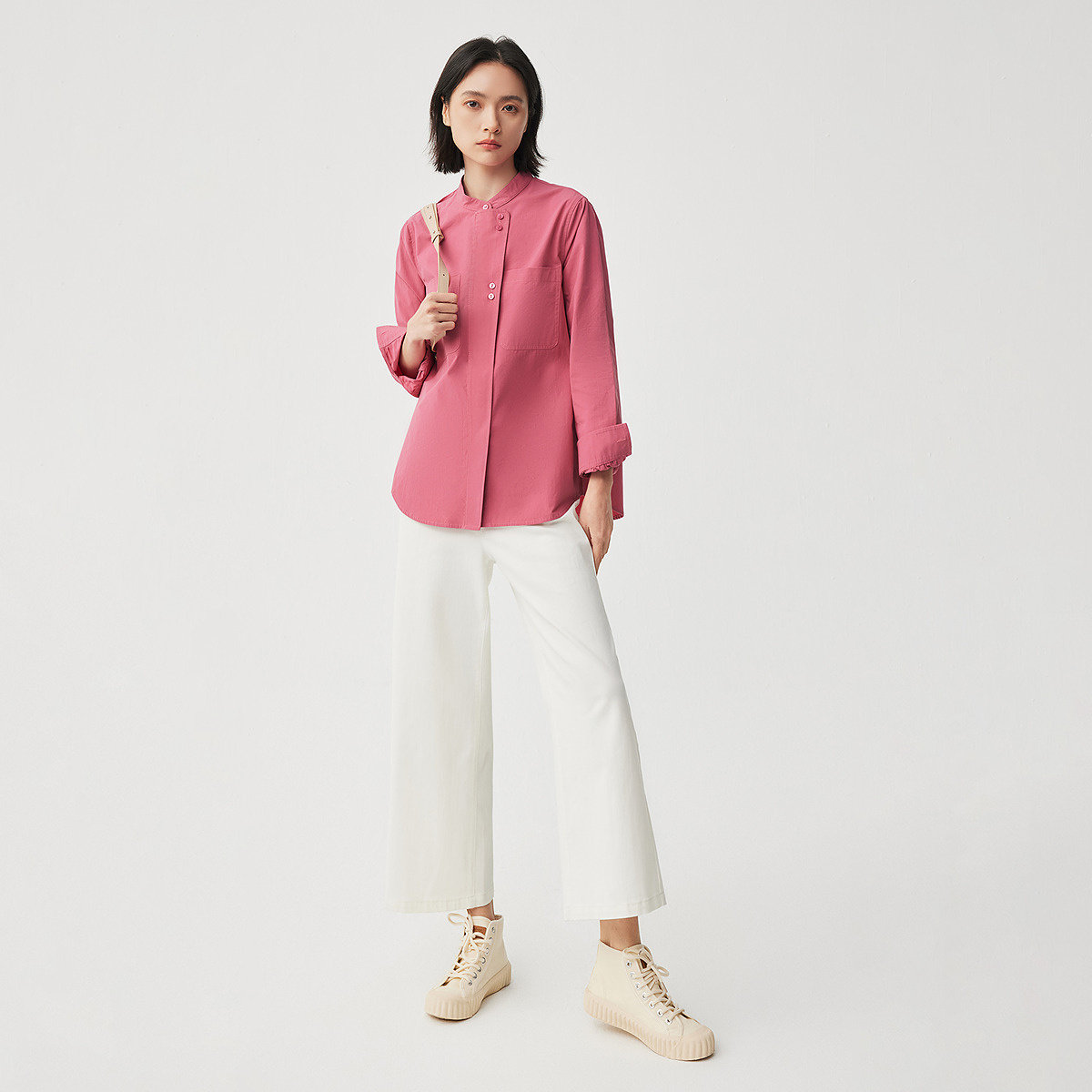 【NATURE系列】菲妮迪衬衫2025秋新款简约风桃红色时尚减龄上衣女