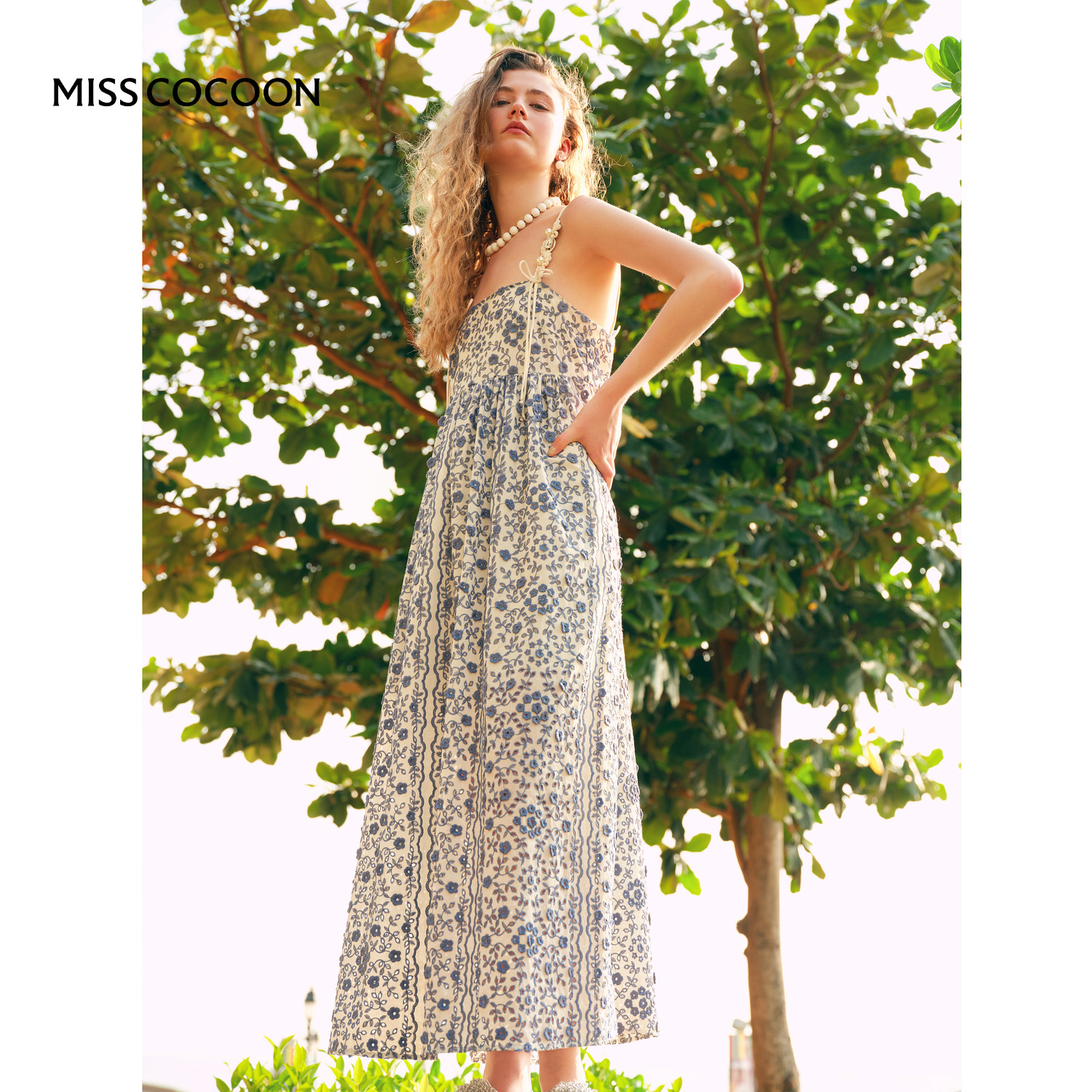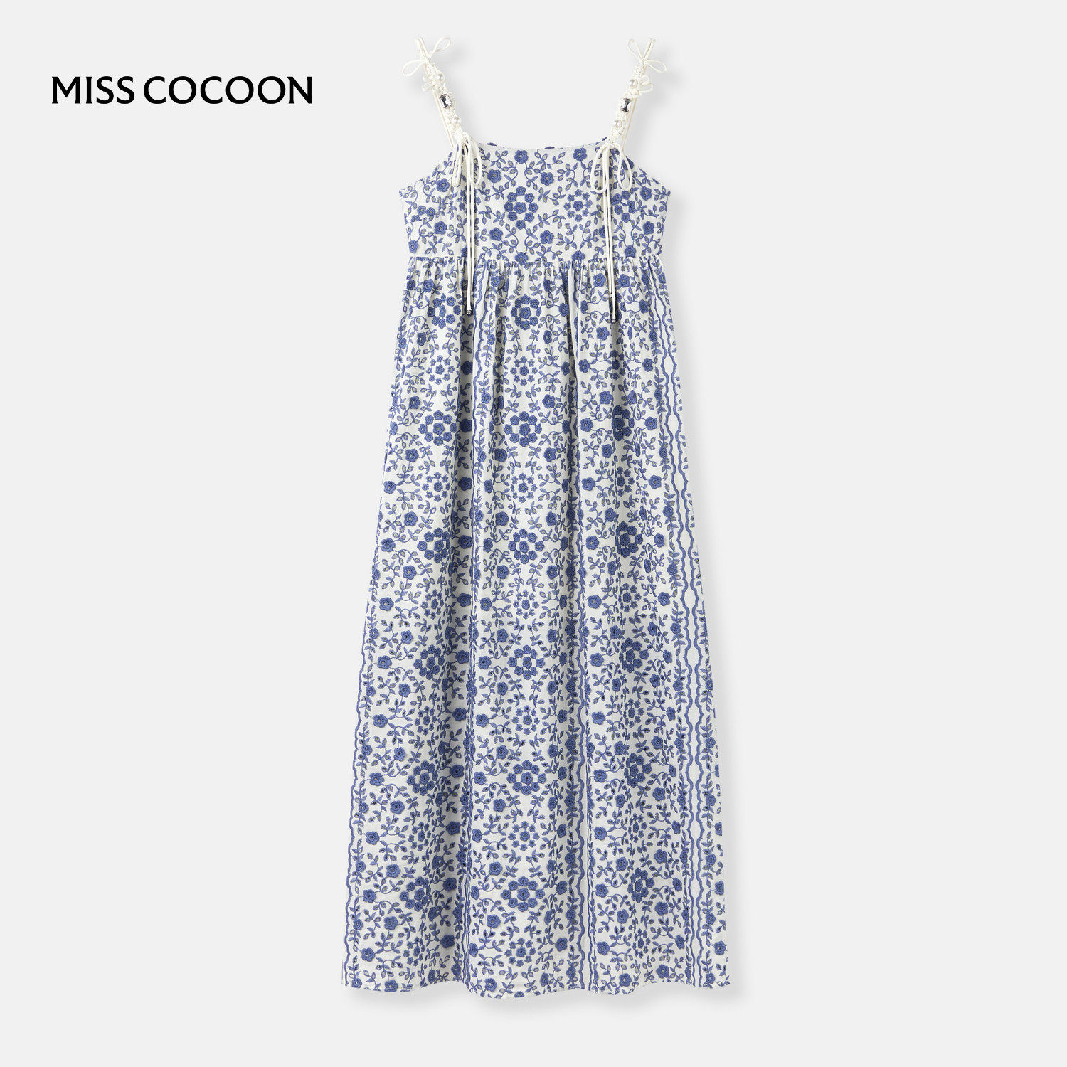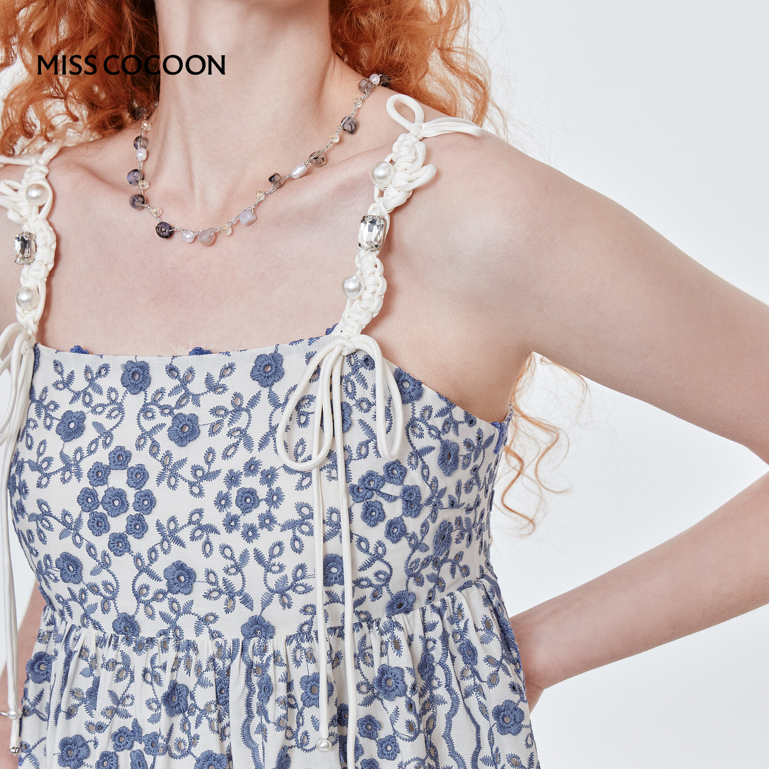 MISS COCOON可可尼度假吊带裙女2025秋季新款立体绣花纯棉连衣裙