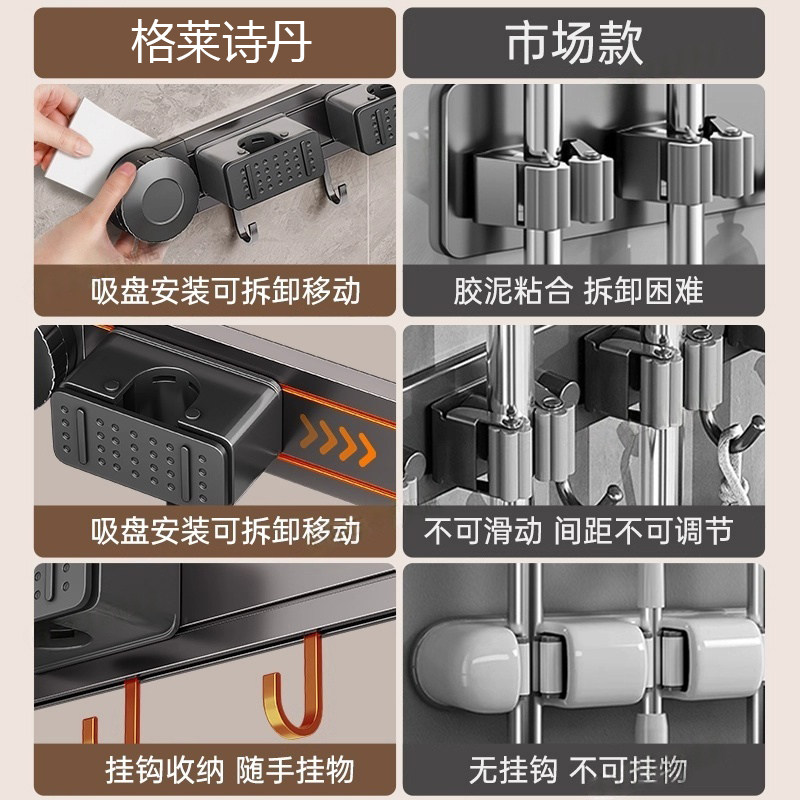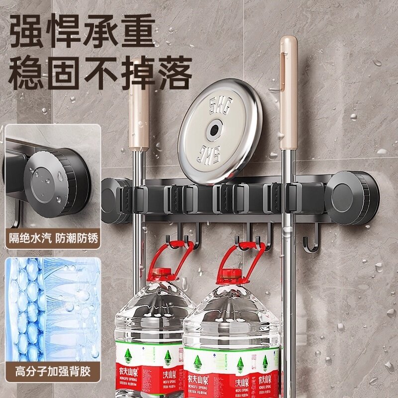 吸盘拖把壁挂夹免打孔挂钩卫生间墙上固定器置物架毛巾扫把收纳架