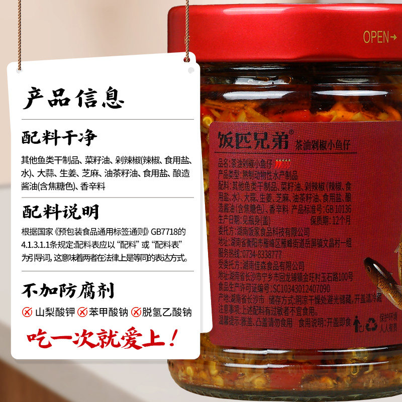 饭匹兄弟茶油剁椒小鱼仔湖南特产辣椒酱下饭菜香辣鱼干柴火鱼酸辣