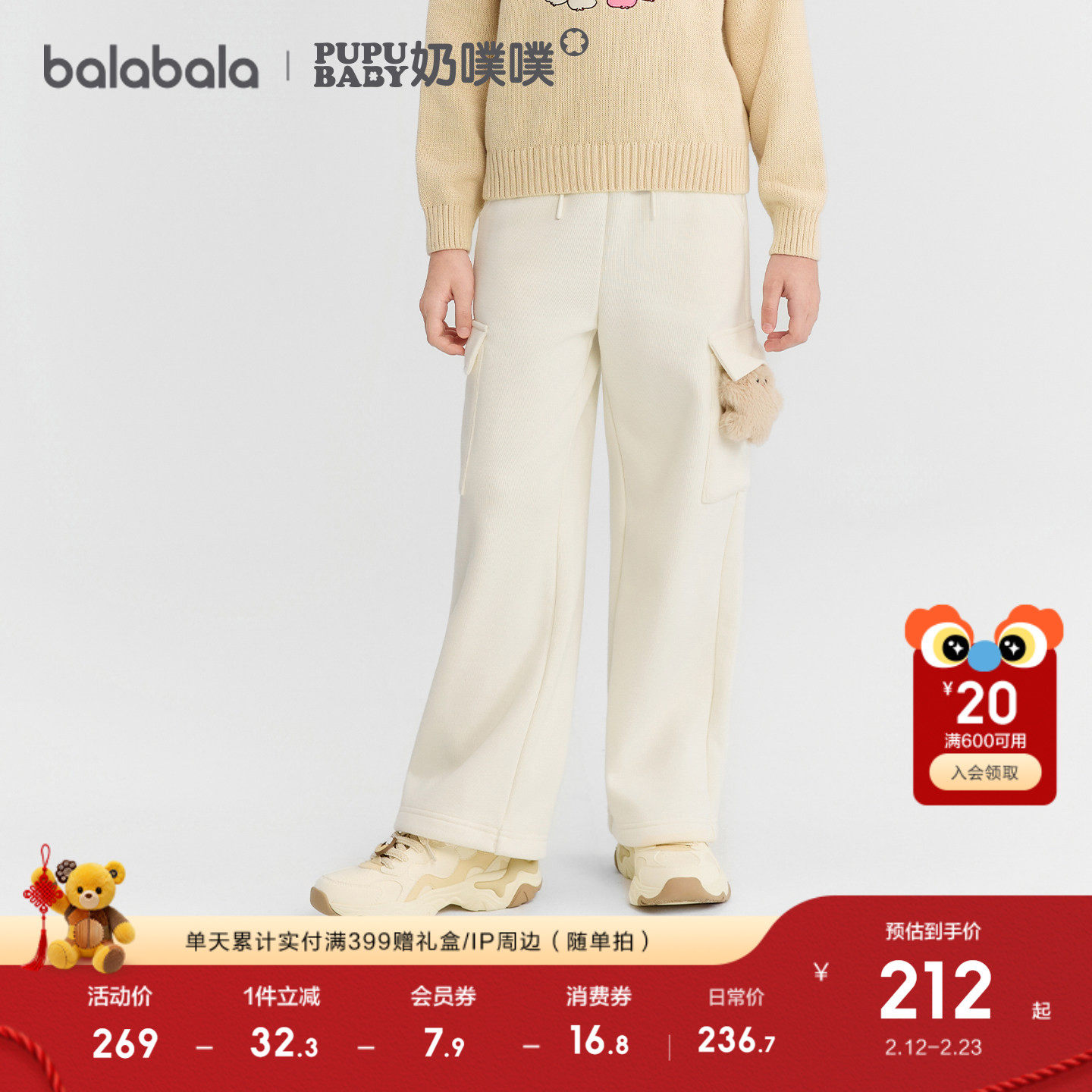【奶噗噗IP商场同款】巴拉巴拉女童加绒裤子2025冬新款儿童工装裤