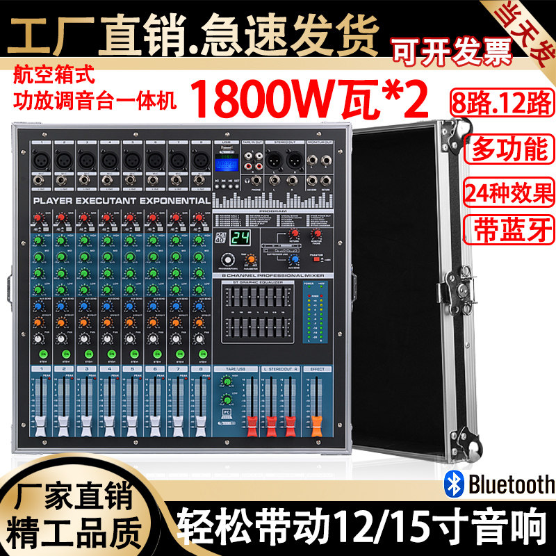 专业调音台带混响8/12/路带功放一体机蓝牙USB婚庆演出舞台工程