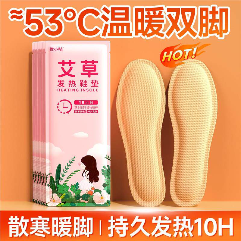 优小贴自发热鞋垫艾草发热暖宝宝暖脚神器加热暖脚宝暖足脚底暖鞋