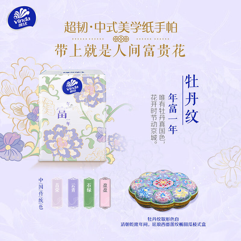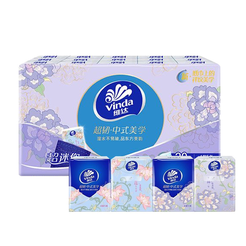 维达中式美学手帕纸4层5张30包便携小包纸巾