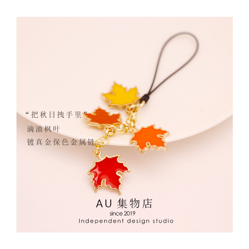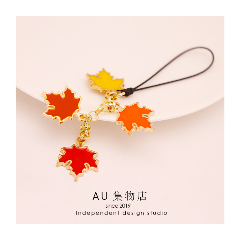 原创落叶红枫流苏手机长链少女款森系枫叶手机绳U盘包包挂件挂饰
