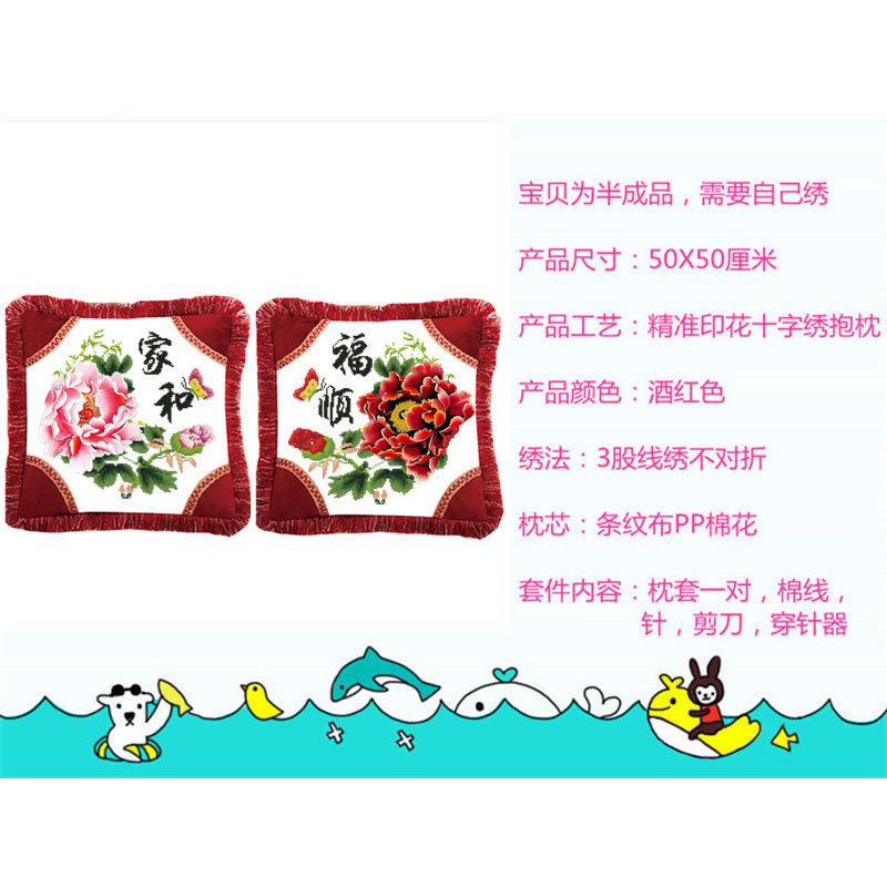 自己绣精准印花十字绣抱枕套沙发靠垫车靠枕中国风家和福顺一对装