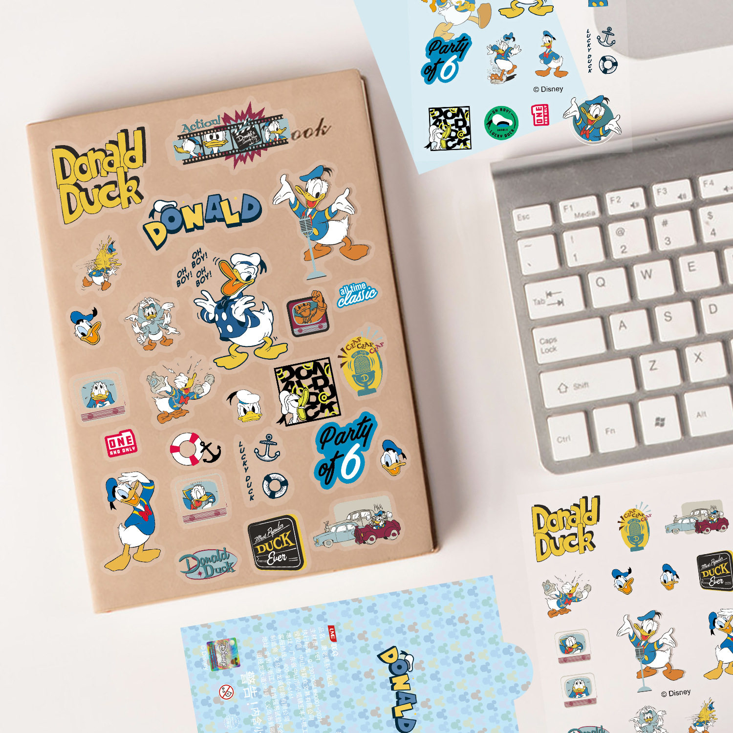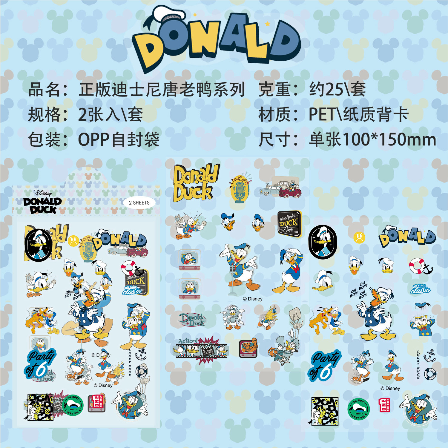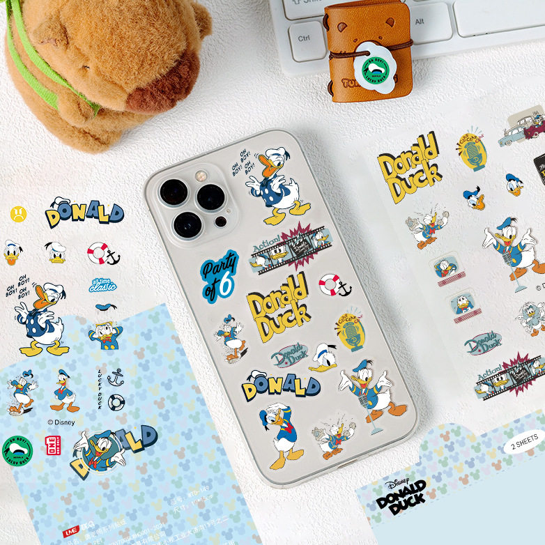 2张卡通迷你迪士尼透明无白边米老鼠唐老鸭贴纸防水可爱儿童玻璃保温水杯装饰头盔手机壳文具电脑贴画男女孩